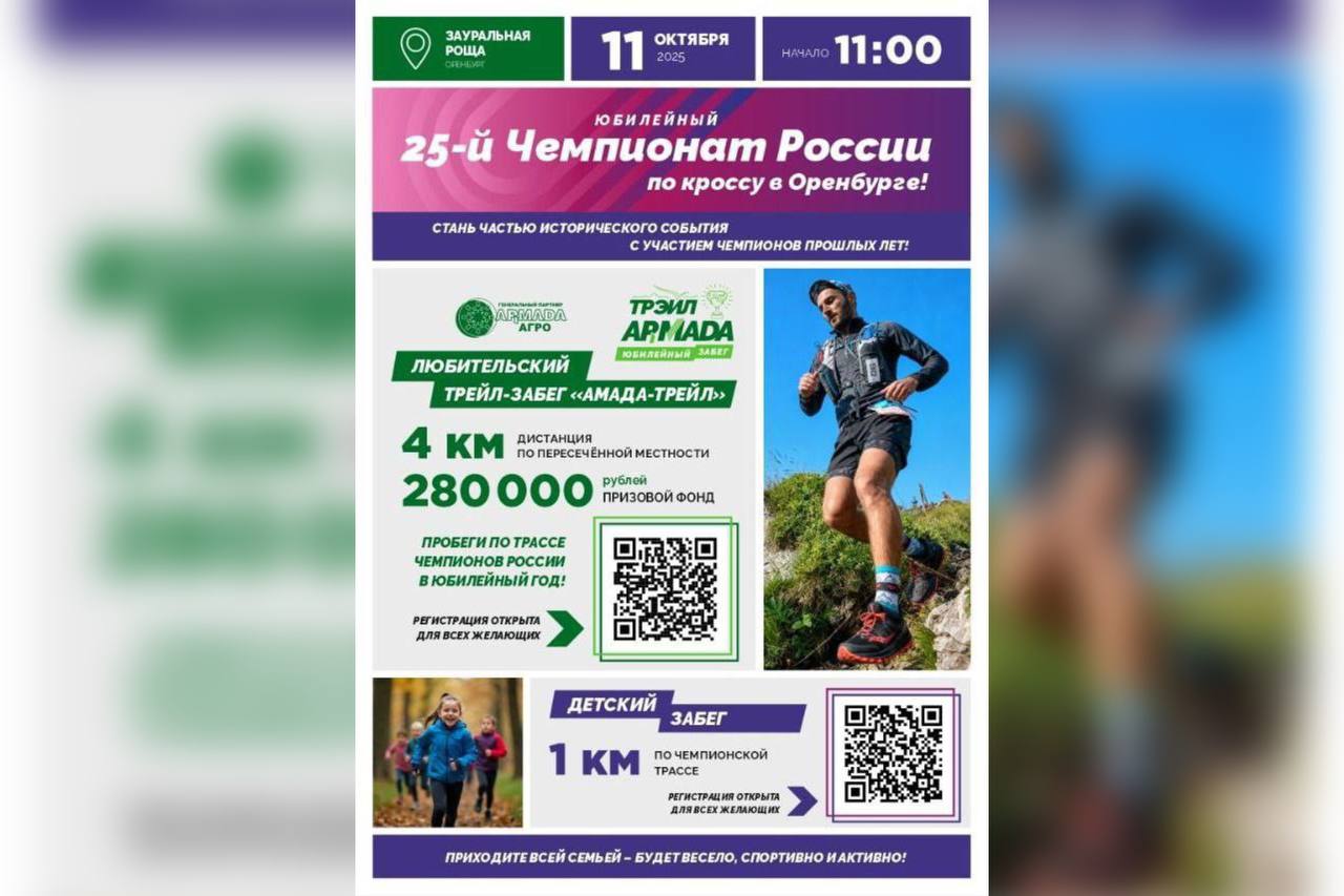 11 октября в Зауральной роще оренбуржцев ждет масштабное спортивное событие – XXV чемпионат России по кроссу (6+).