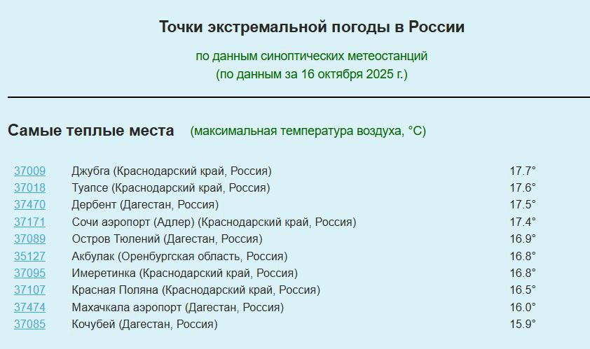 Акбулак с максимальной температурой воздуха в +16,8 градусов, стал шестым самым тёплым местом в стране.