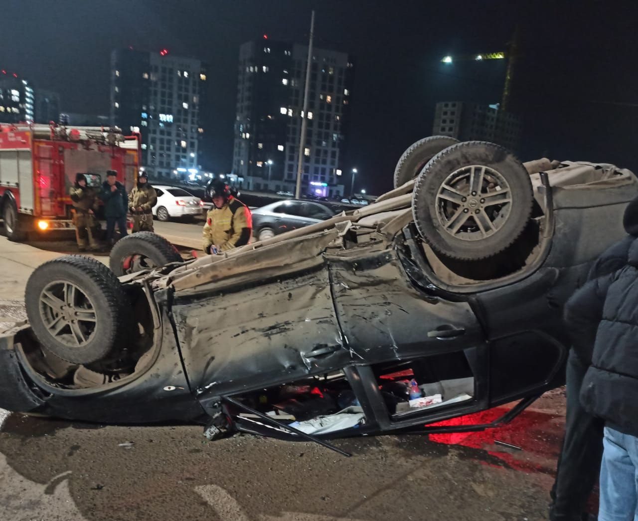 «Ниссан» на крыше. В Оренбурге после ДТП на Загородном шоссе пострадали 2 человека