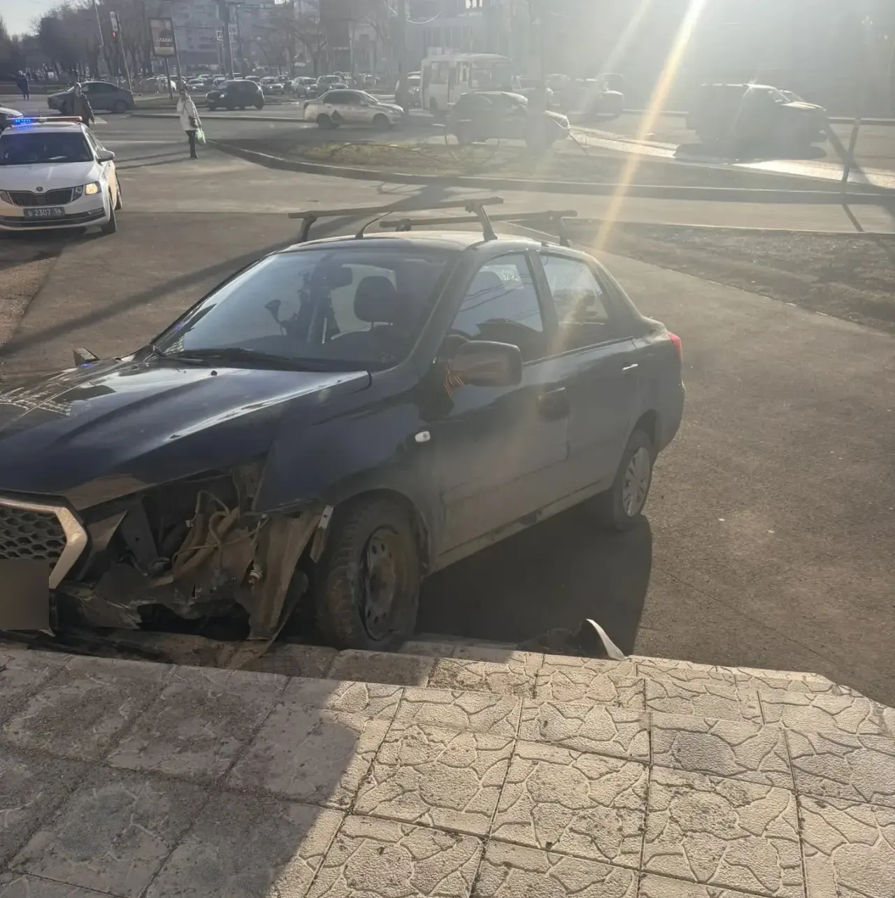 «Датсун» vs «Крузера». В центре Оренбурга после ДТП одно авто влетело в отдел полиции