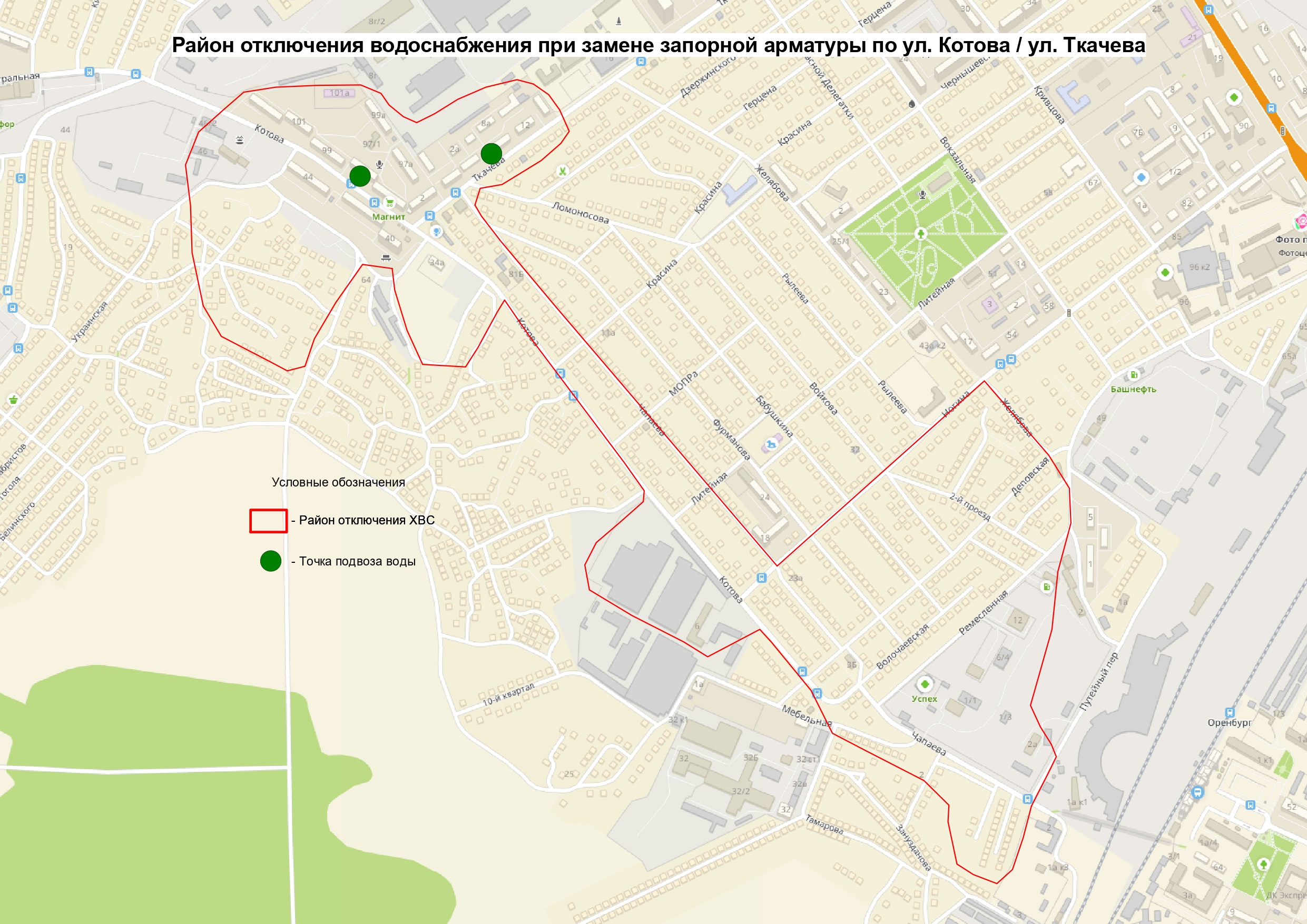 Воду будут подвозить по двум адресам улица Котова, 97 и улица Ткачева, 10.
