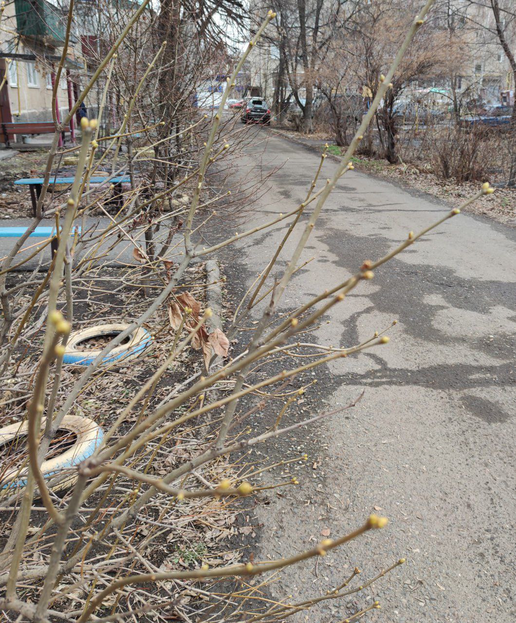 В сети оренбуржцы делятся фото набухших почек деревьев и цветущих кустарников.