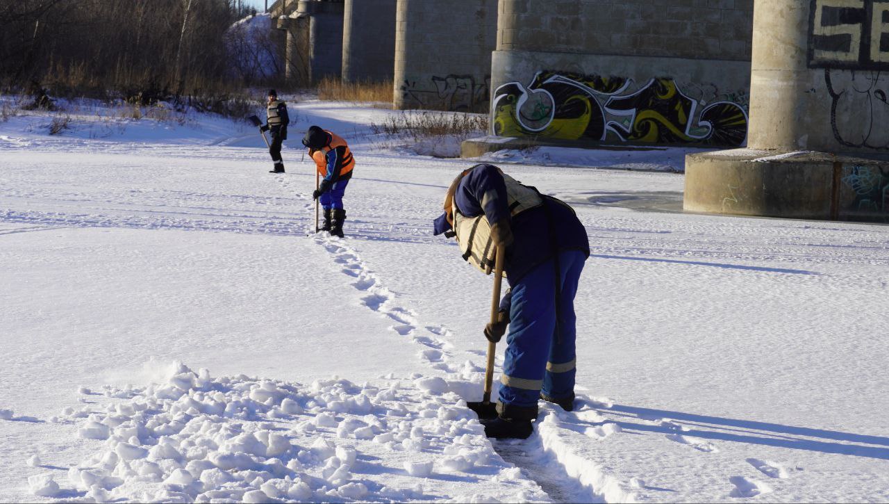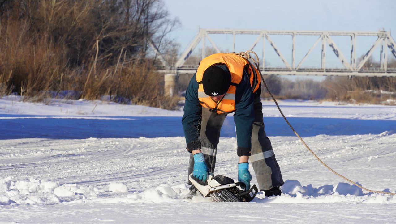 Чтобы не поплыли. Распиловку льда начали на реке Урал в Оренбурге