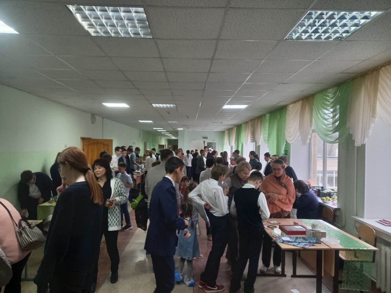 И правда, в рекреациях на всех трёх этажах — яблоку негде было упасть. Тут были все, кто смог прийти в этот субботний день.