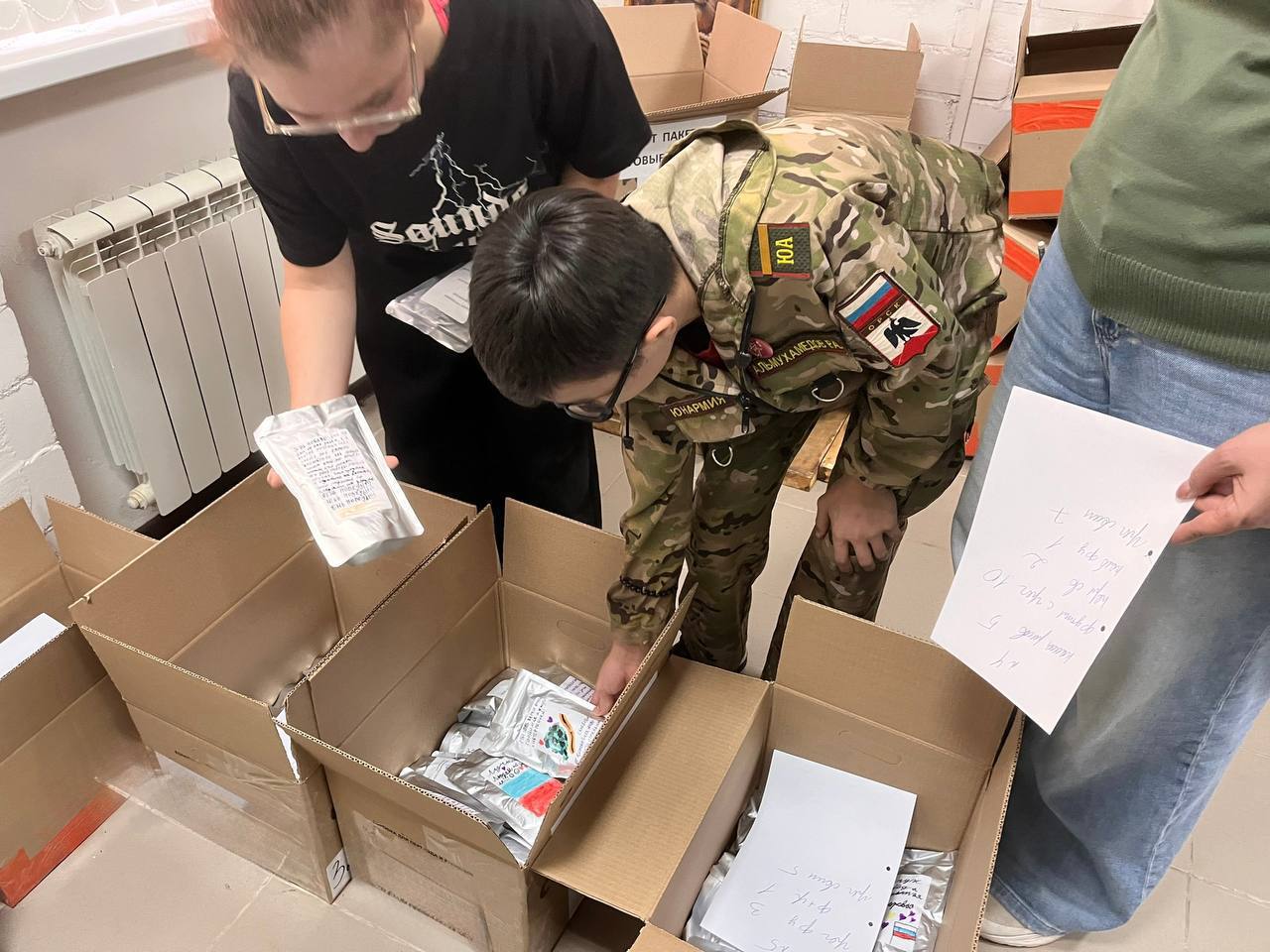 Недавно бойцы сделали заказ. Волонтеры вместе со школьниками взялись за дело.