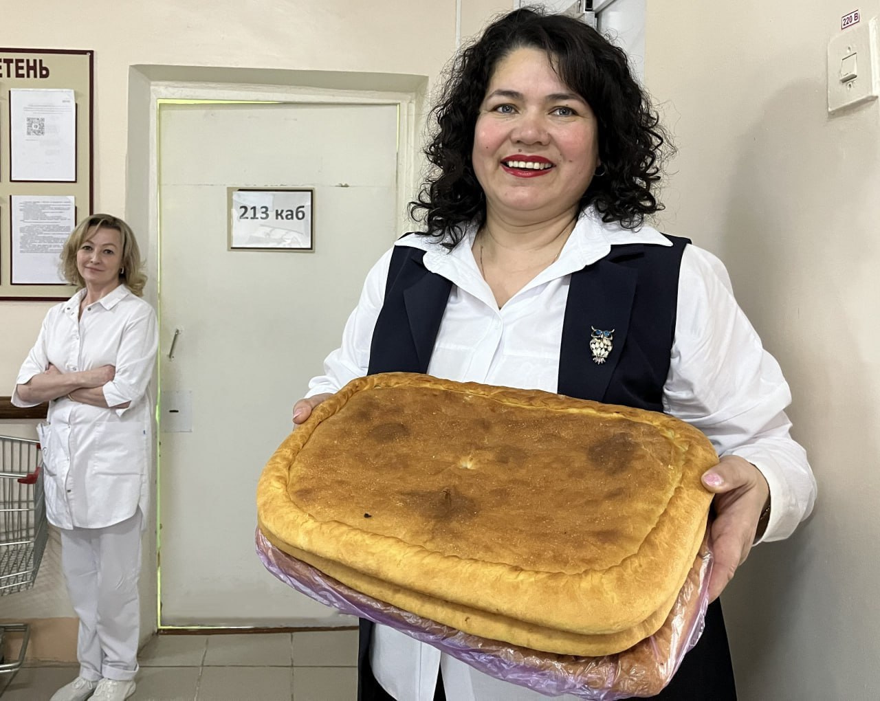 Поздравила бойцов и руководитель волонтерского сообщества «Помощь СВО.Оренбург» Юлия Искандарова, которая передала ребятам сладости к чаю и пироги собственного изготовления.