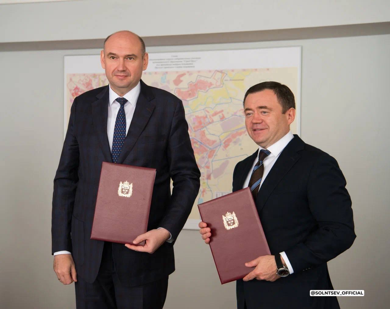 Евгений Солнцев подписал соглашение о сотрудничестве с председателем банка ПСБ Петром Фрадковым