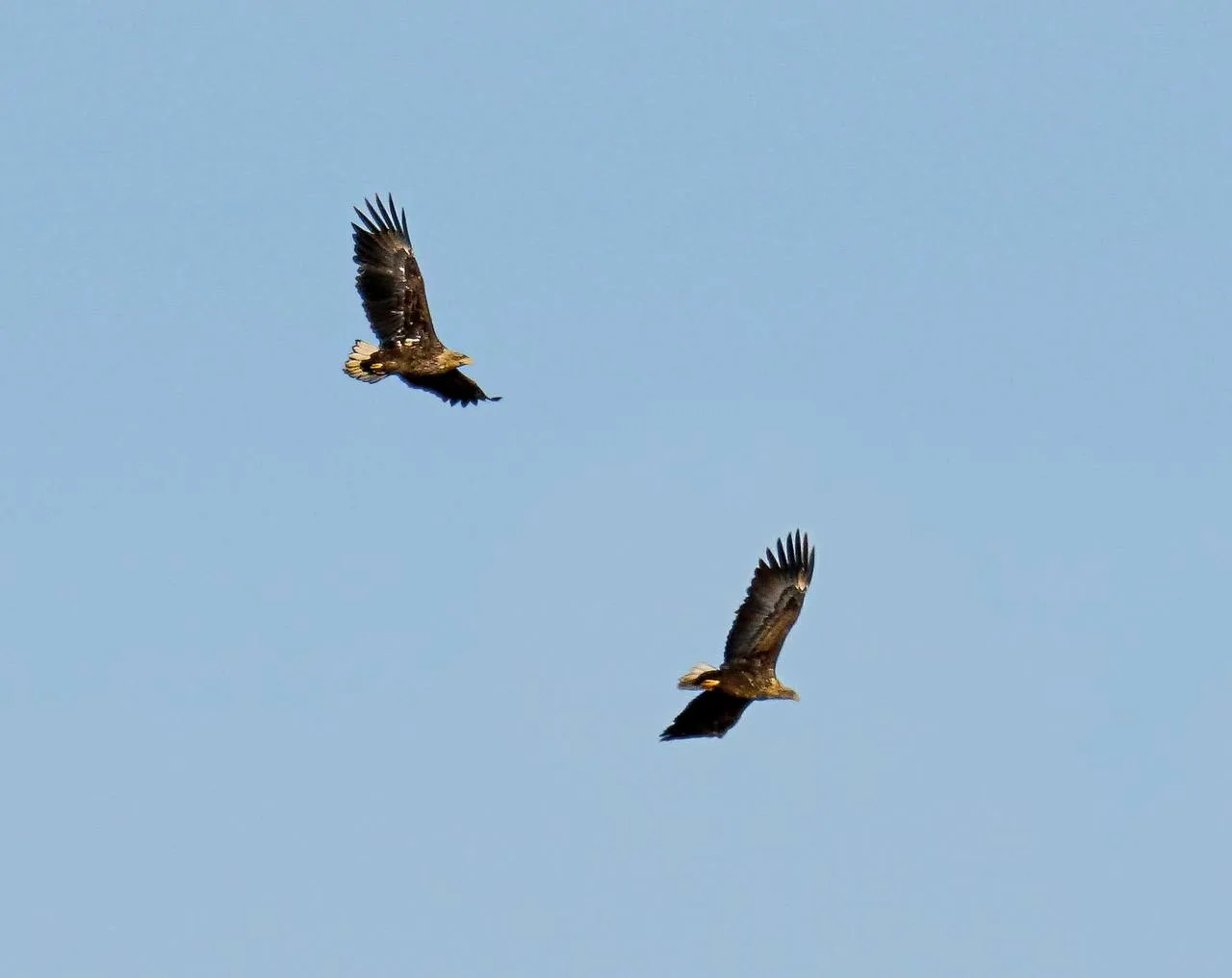 В серии снимков попали: дрозд-рябинник, орланы, беркут и дятел.