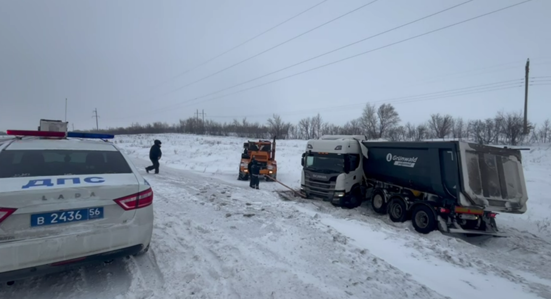 Фуру вытащили из кювета. Под Сорочинском полицейские помогли водителю «Скании»