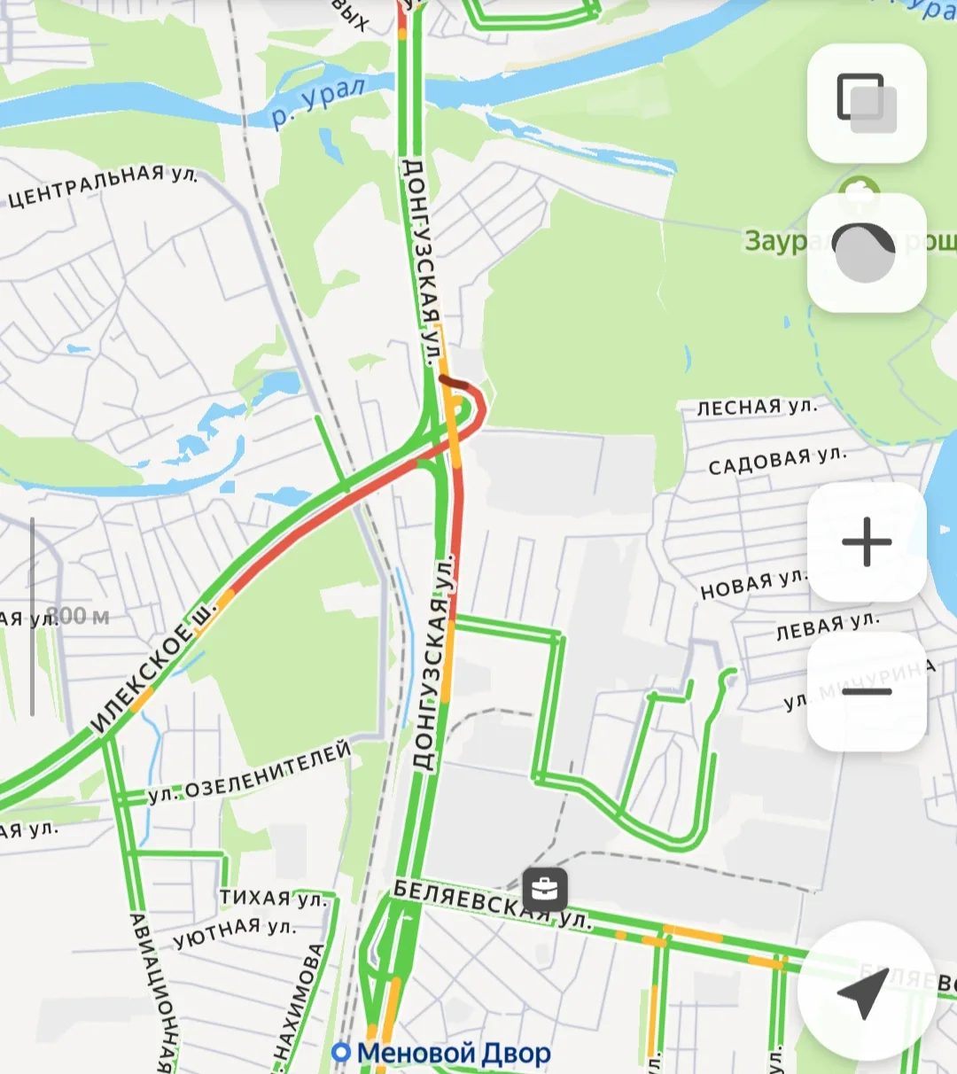 -Илекское шоссе: Трафик стоит в обе стороны. Ситуацию осложняет большое количество большегрузов и сужение проезжей части.
