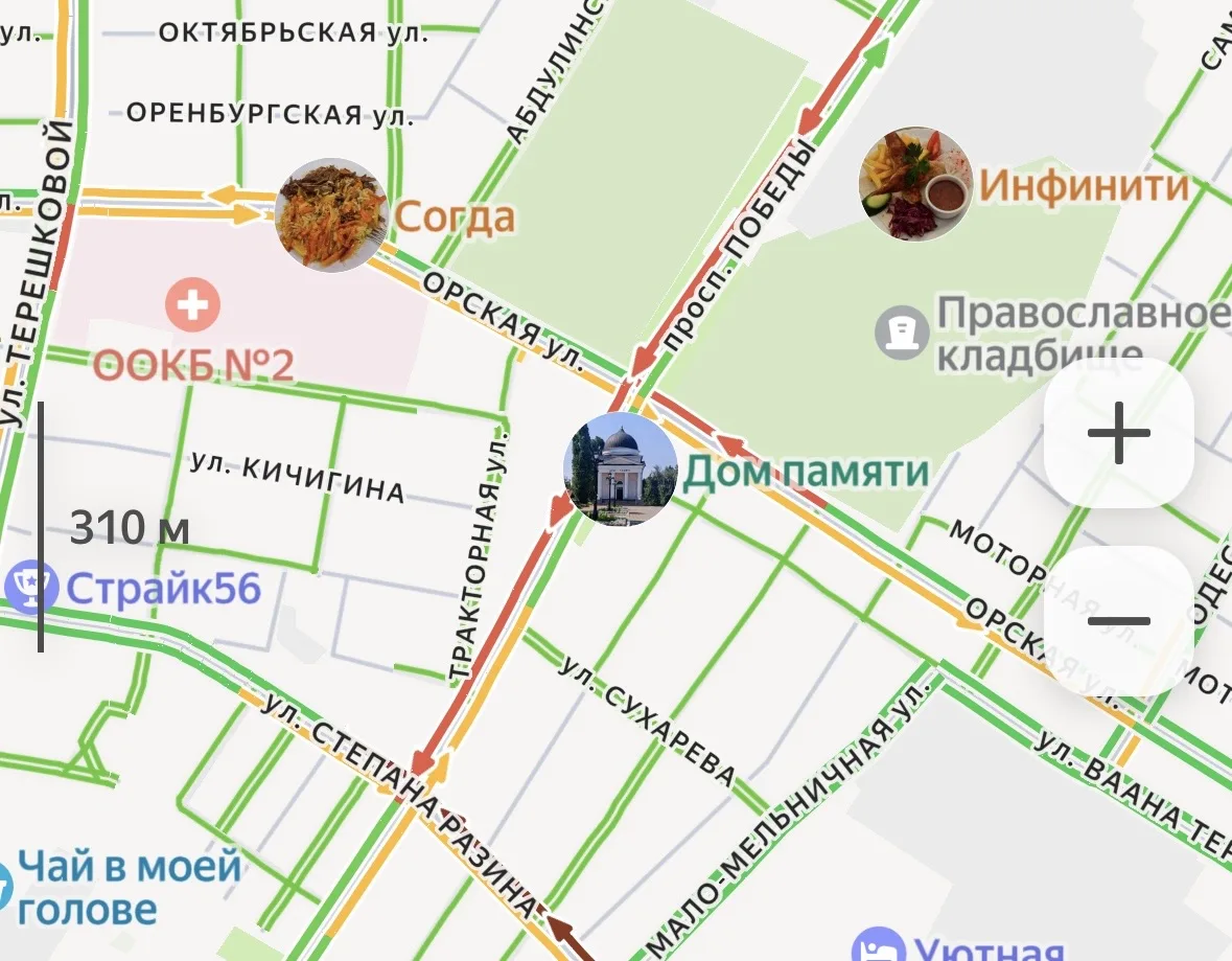 Где сегодня не проехать: посмотрим на дорожные пробки на главных улицах Оренбурга