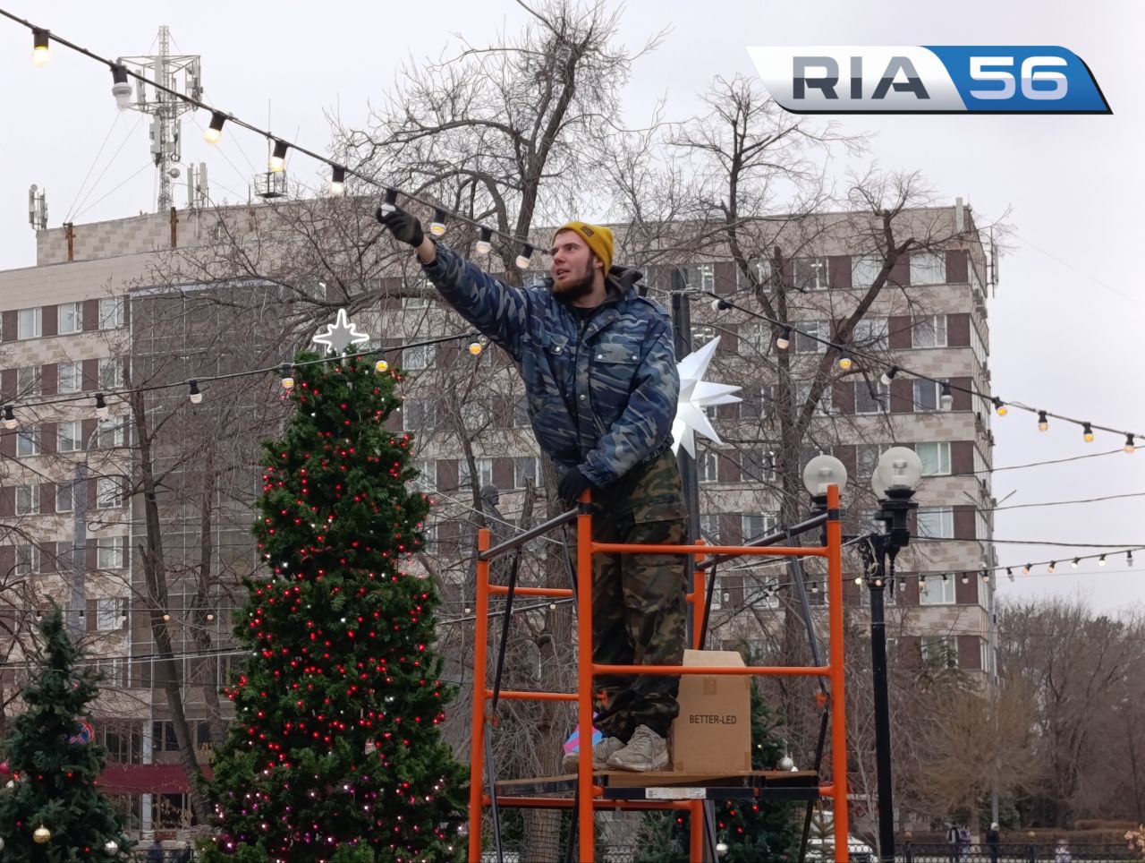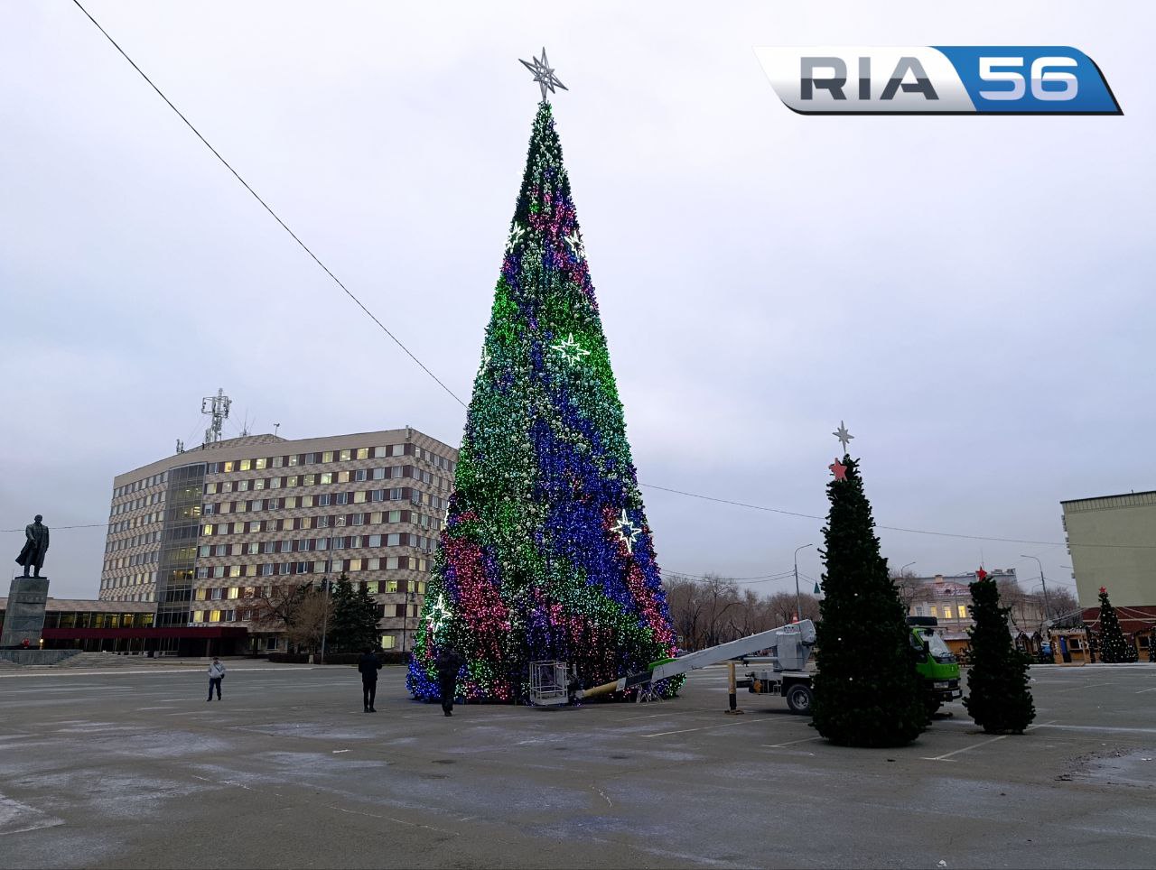 В Оренбурге продолжается подготовка к Новому году — на площади имени Ленина уже завершился монтаж главной елки.