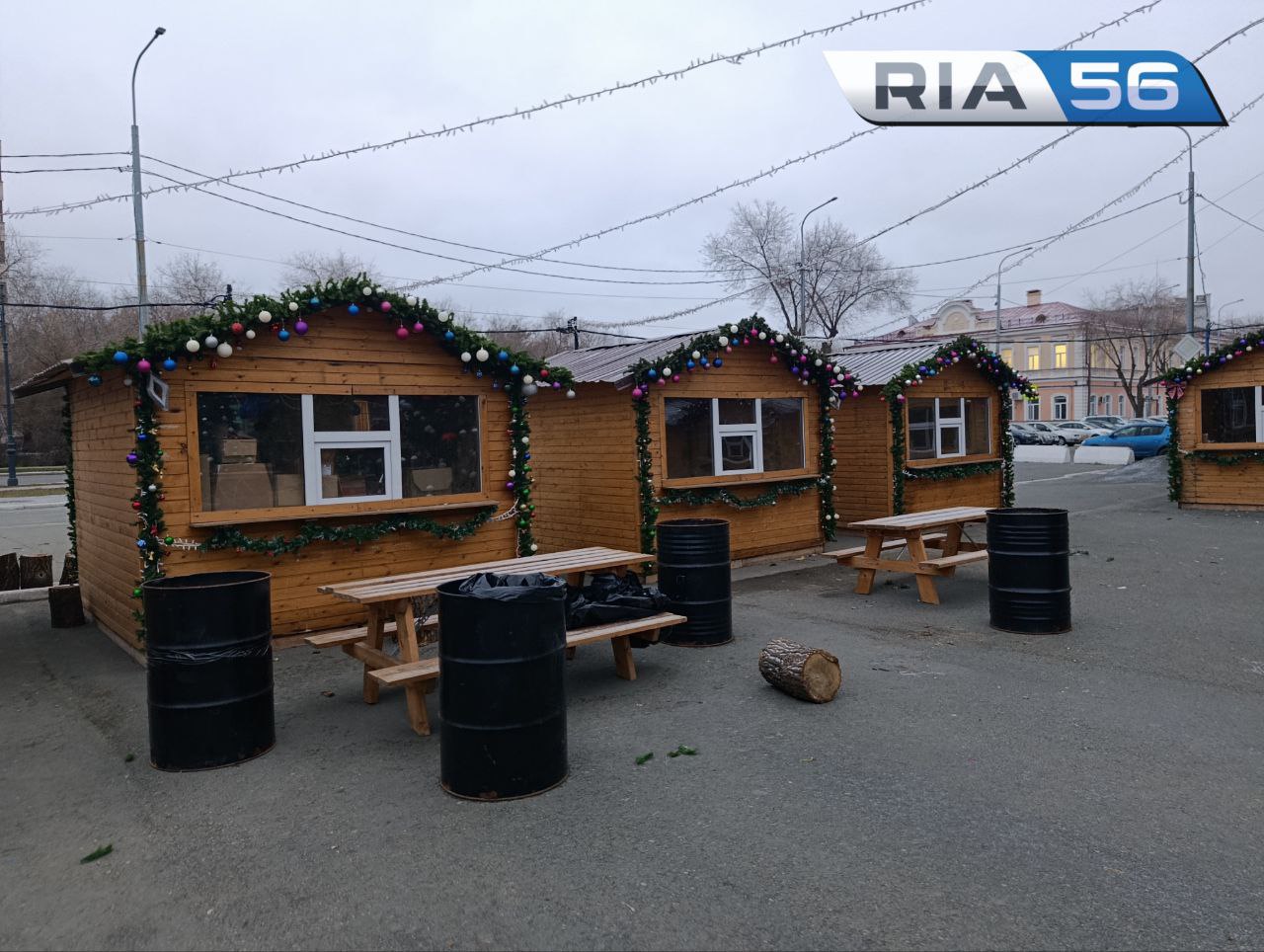 В новогоднем «Маркете еды» уже украсили домики и расставили столы.