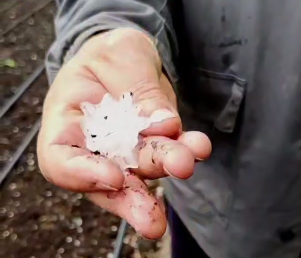 На видео — градины просто, как из пулемета атаковали сельскую территорию. Некоторые — крупные.