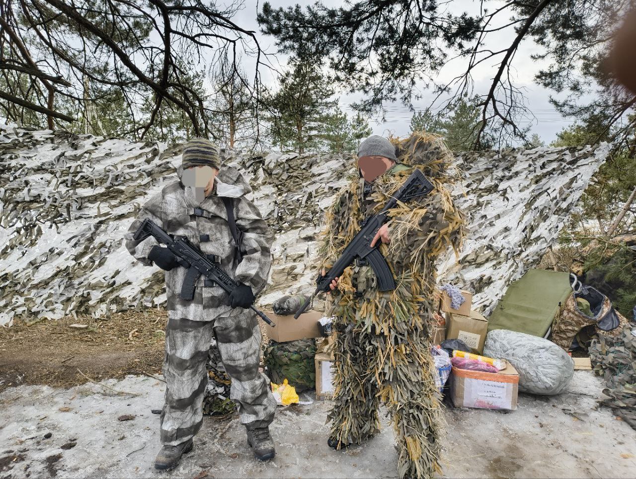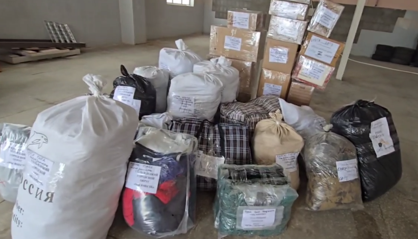 Собраны нужные вещи для еще холодной погоды. Это — одеяла, тёплая одежда и обувь, в том числе куртки и валенки. А также — средства гигиены, инструменты и маскировочные сети.