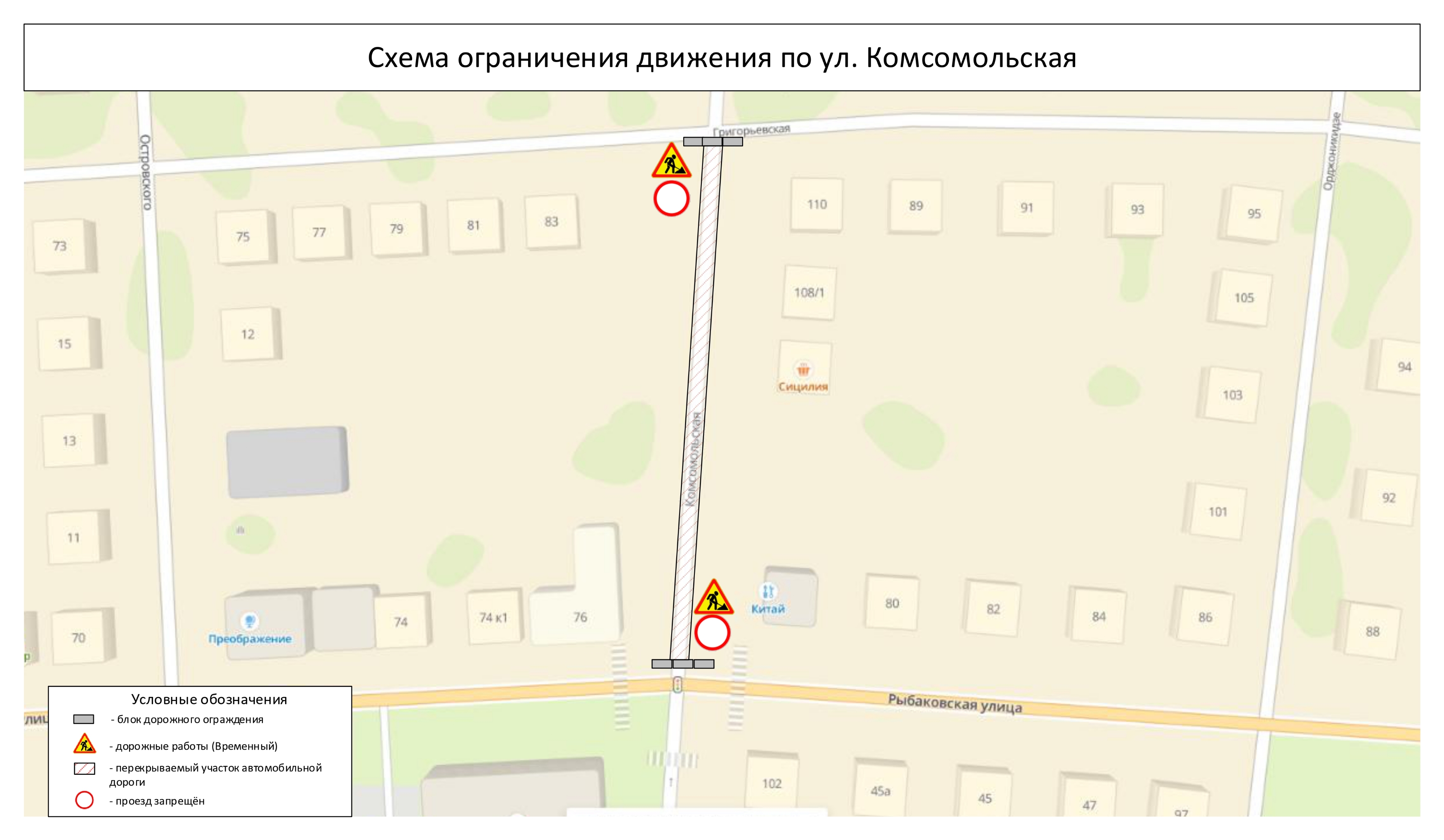 Это участок на улице Комсомольской – от улиц Рыбаковской до Григорьевской.