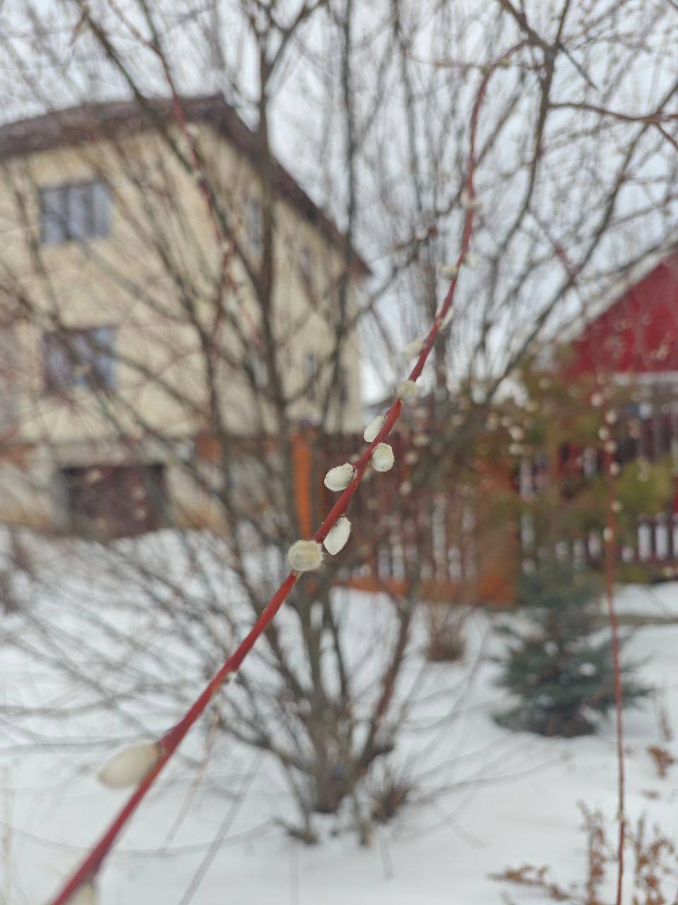 Распустившаяся верба замечена и в посёлке Весенний. Здесь тоже видны набухшие почки.
