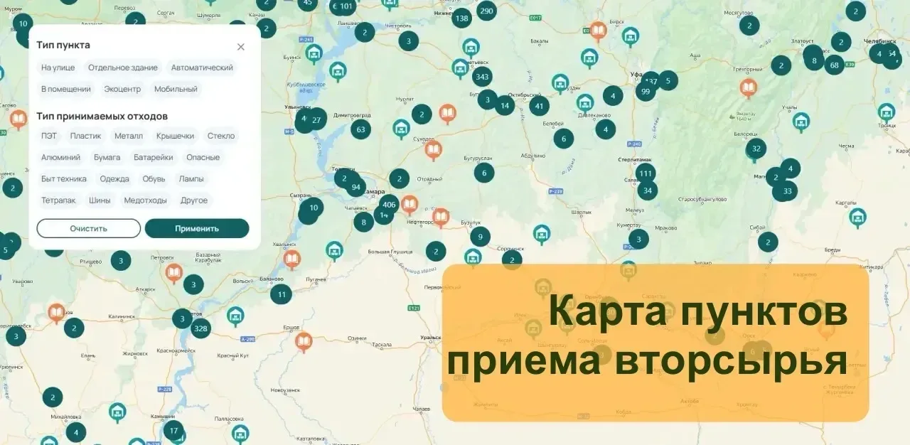 В регионе работает около 300 точек приема вторичных отходов. Чтобы быстро выбрать ближайший пункт можно воспользоваться интерактивной картой.