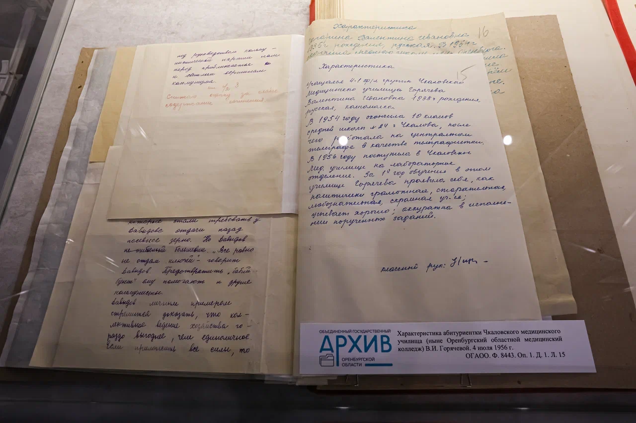 Тогда будущая жена еще только курсанта Гагарина, Валентина Горячева проходила обучение в медучилище города Чкалов в 1956 – 58 годах. Ныне это Оренбургский областной медицинский колледж. Руководство колледжа передало личное дело учащейся Горячевой-Гагариной в Государственный архив Оренбуржья.