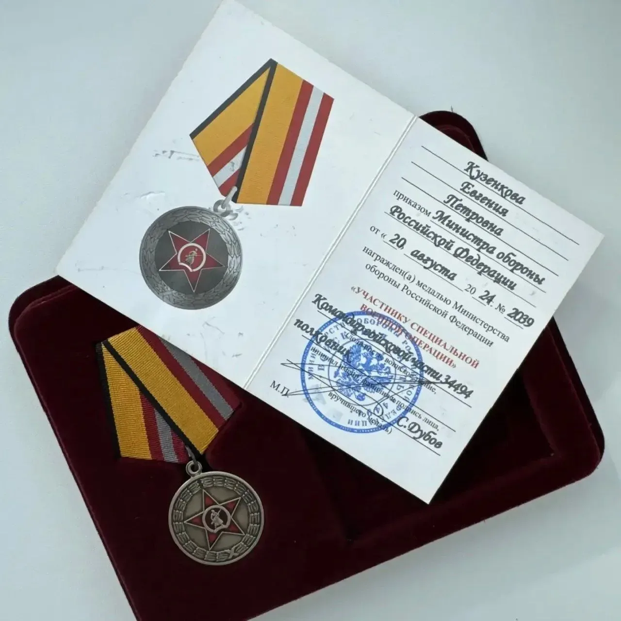 Медсестре из Оренбурга Евгении Кузенковой вручили медаль Минобороны за участие в СВО