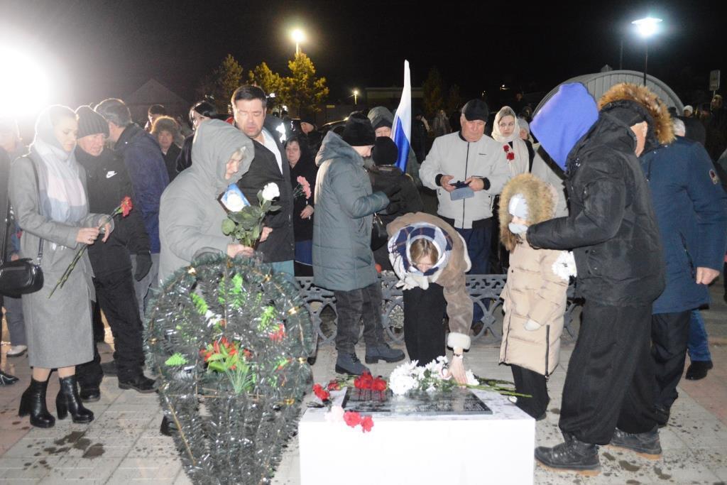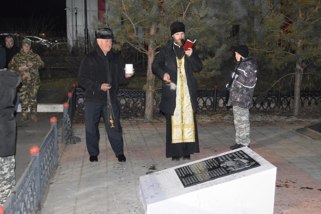 Настоятель местного храма провел молебен о павших и освятил мемориал.