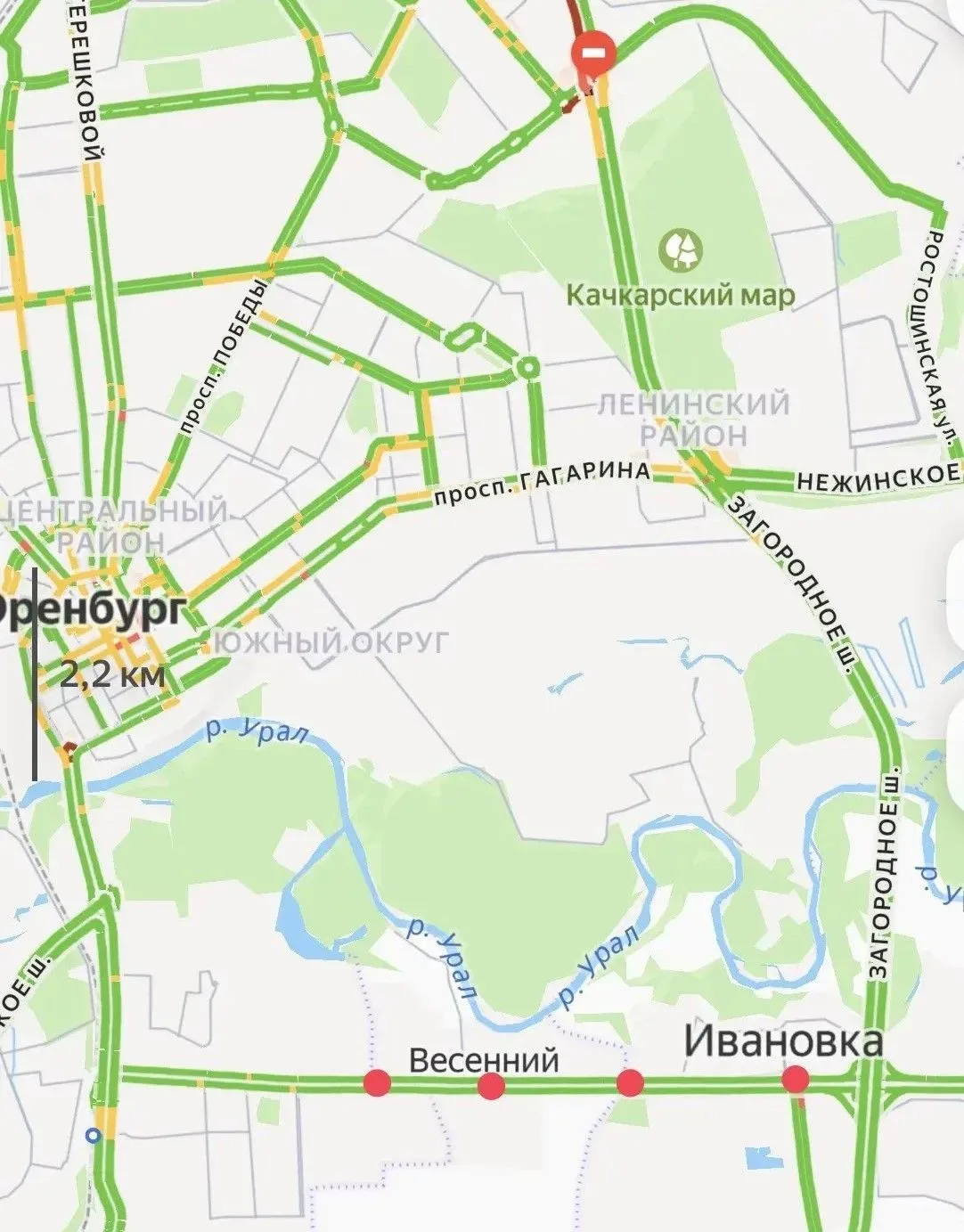 После начала ремонта автомобильного моста через Урал на улице Донгузской резко выросла нагрузка на альтернативном маршруте. Это региональная дорога из Оренбурга в Беляевку.