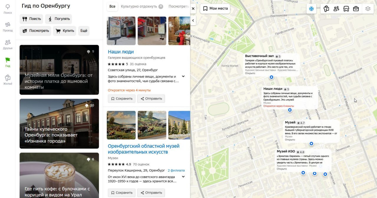 Отметим, что сегодня на сервисе 2ГИС есть уже 9 подборок в разделе «Гид по Оренбургу». Они объединяют прогулки по историческим местам, музеям.
