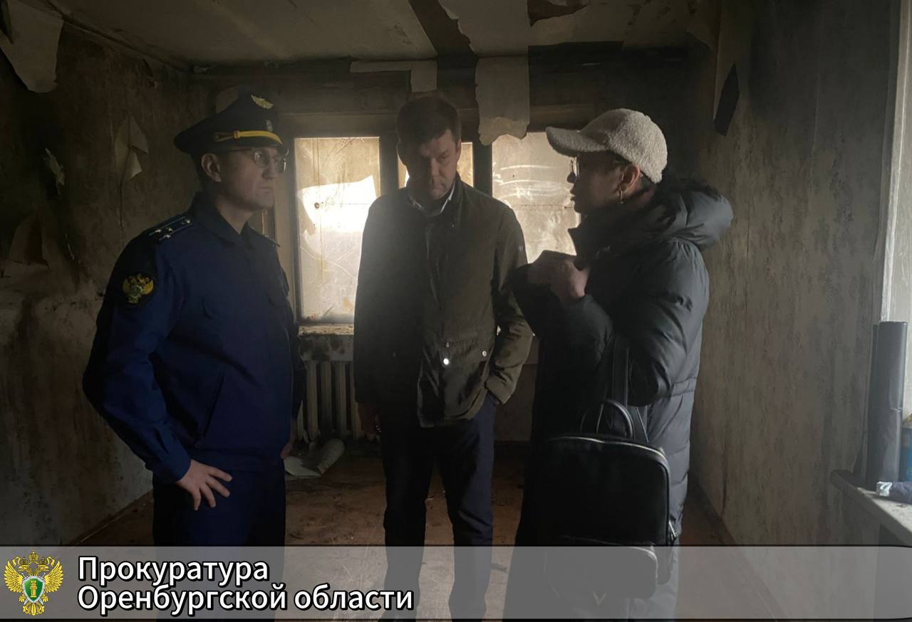 Чтобы разобраться в ситуации и. о. главы Оренбурга Альберт Юмадилов и представитель прокуратуры Сергей Хлопунов забрались на сгоревшую крышу пятиэтажки.