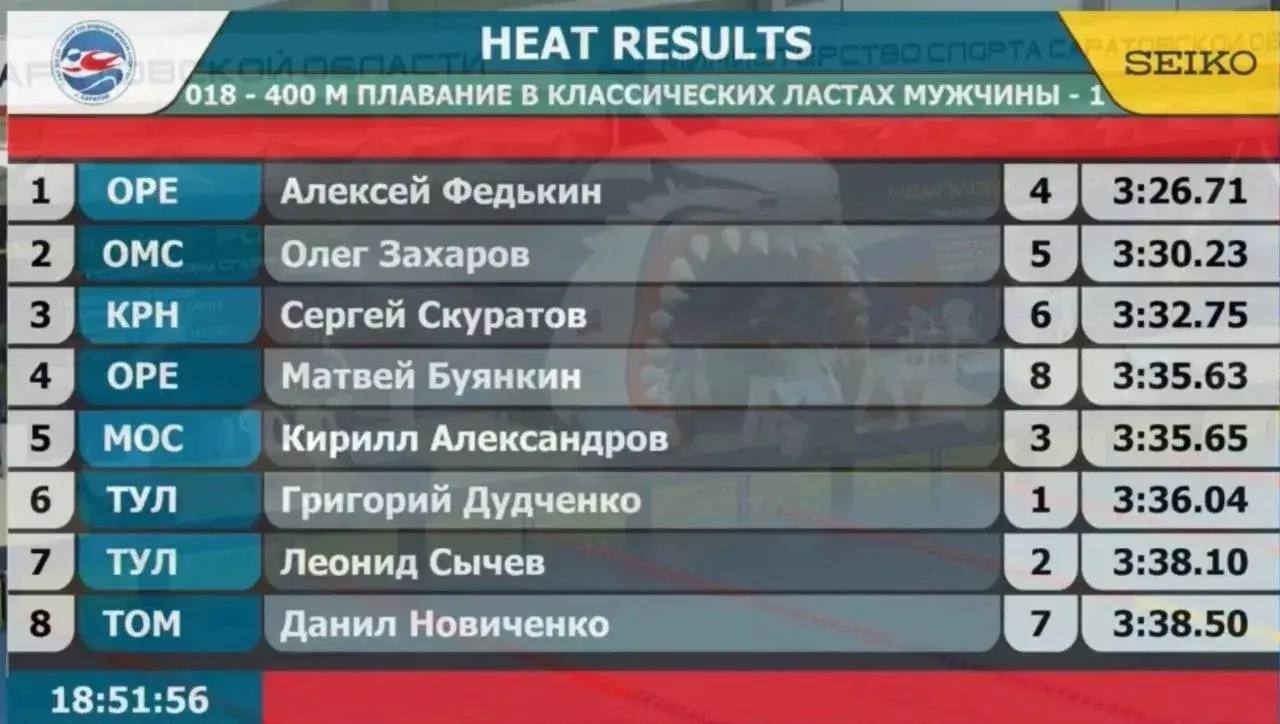 Золотой дубль Алексея Федькина: первое место на дистанциях 200 и 400 метров в классических ластах. Серебро Полины Иванушкиной на дистанции 100 метров + НОВЫЙ РЕКОРД ОБЛАСТИ (47.31 сек.)! Бронза в эстафете 4×100 м (Федькин, Иванушкина, Буянкин, Васецкая) и снова рекорд региона!