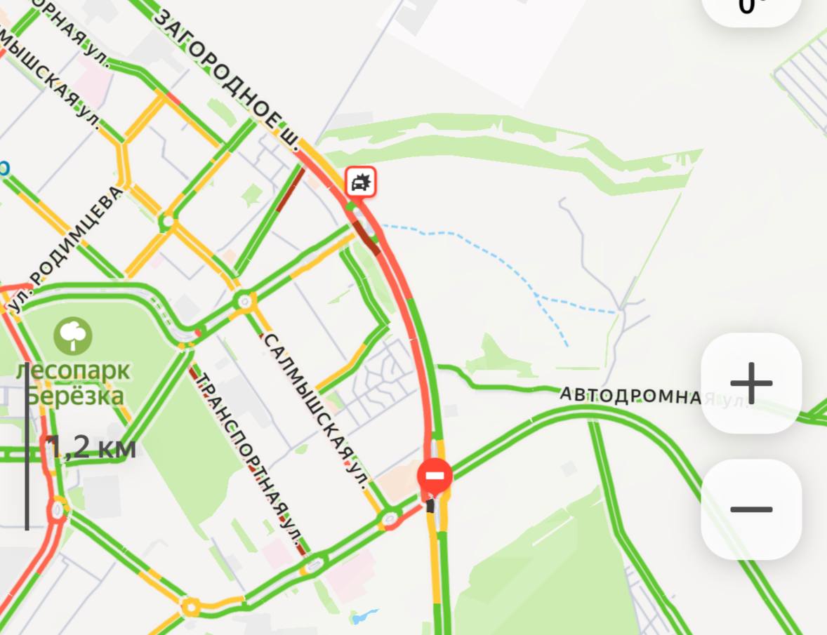 -Загородное шоссе: пробки в обоих направлениях в районе кольца возле ТРЦ «Кит».