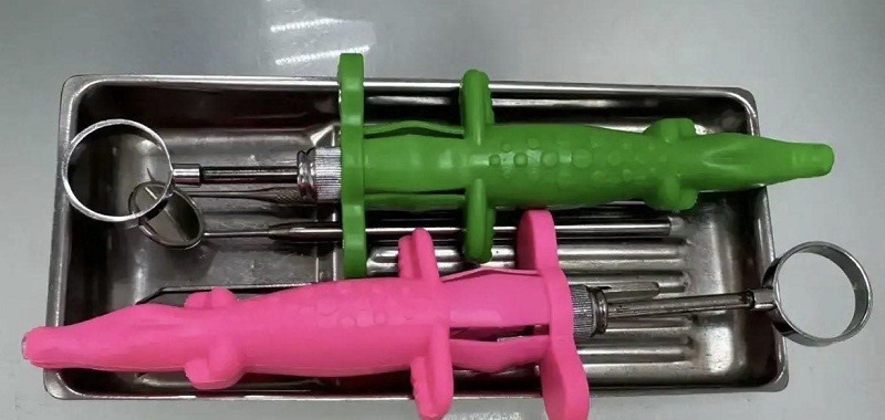 Чтобы детки не боялись медицинских манипуляций были приобретены специальные насадки на карпульные шприцы — крокодильчики. Яркие игрушки маскируют медицинский инструмент, тем самым отвлекает и успокаивает малыша.
