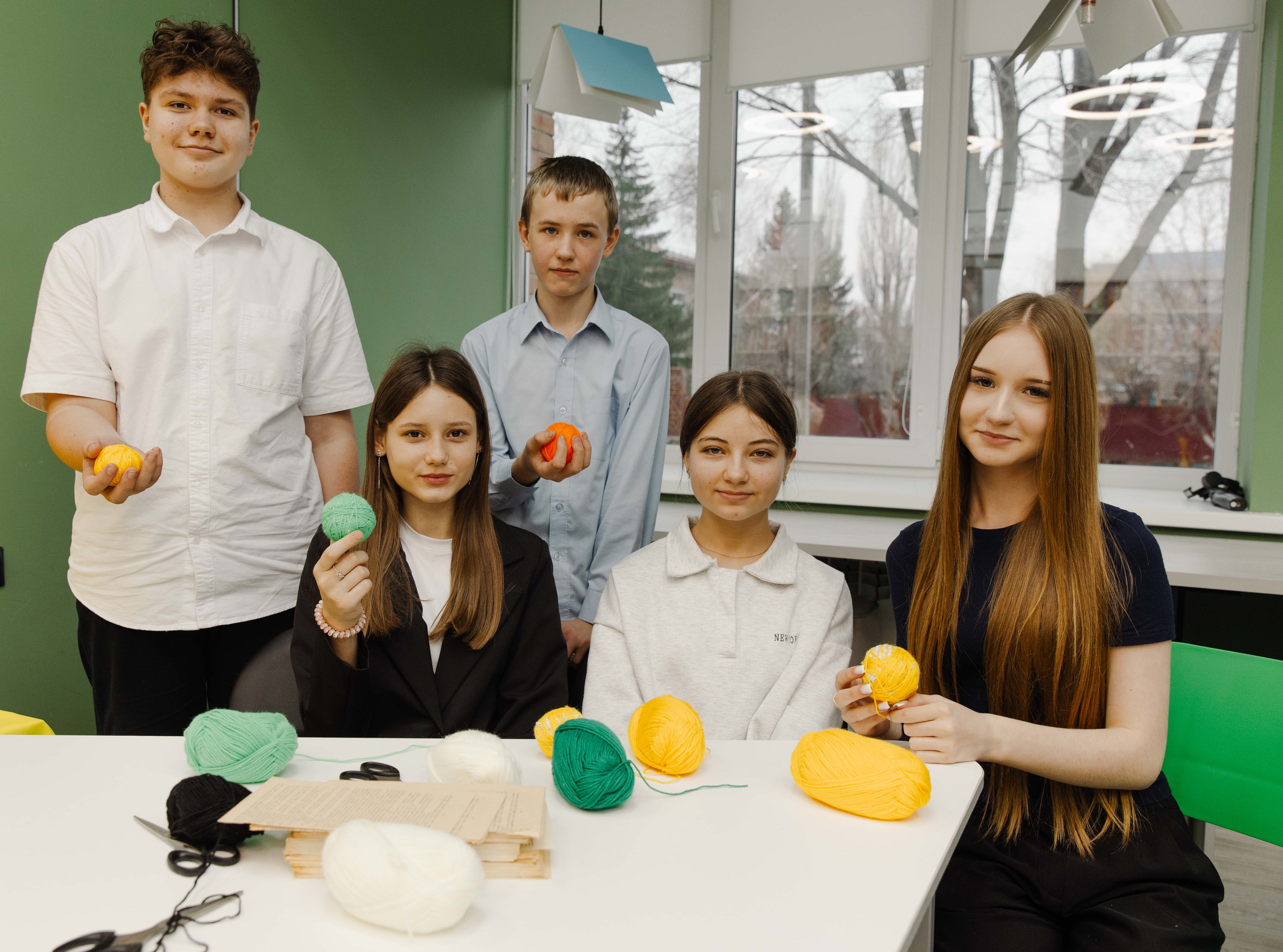 Под руководством специалистов школьники создавали теплые разноцветные шары из шерстяных ниток, которые затем стали украшениями для общей елки.