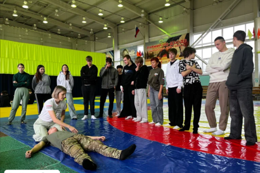 Обучение провели подготовленные волонтеры-инструкторы. Студентам рассказали, как правильно оказать первую помощь пострадавшему до приезда скорой помощи используя средства для остановки кровотечения. После теоретической части участники на практике закрепили полученные знания — накладывали турникеты и другие перевязочные средства.