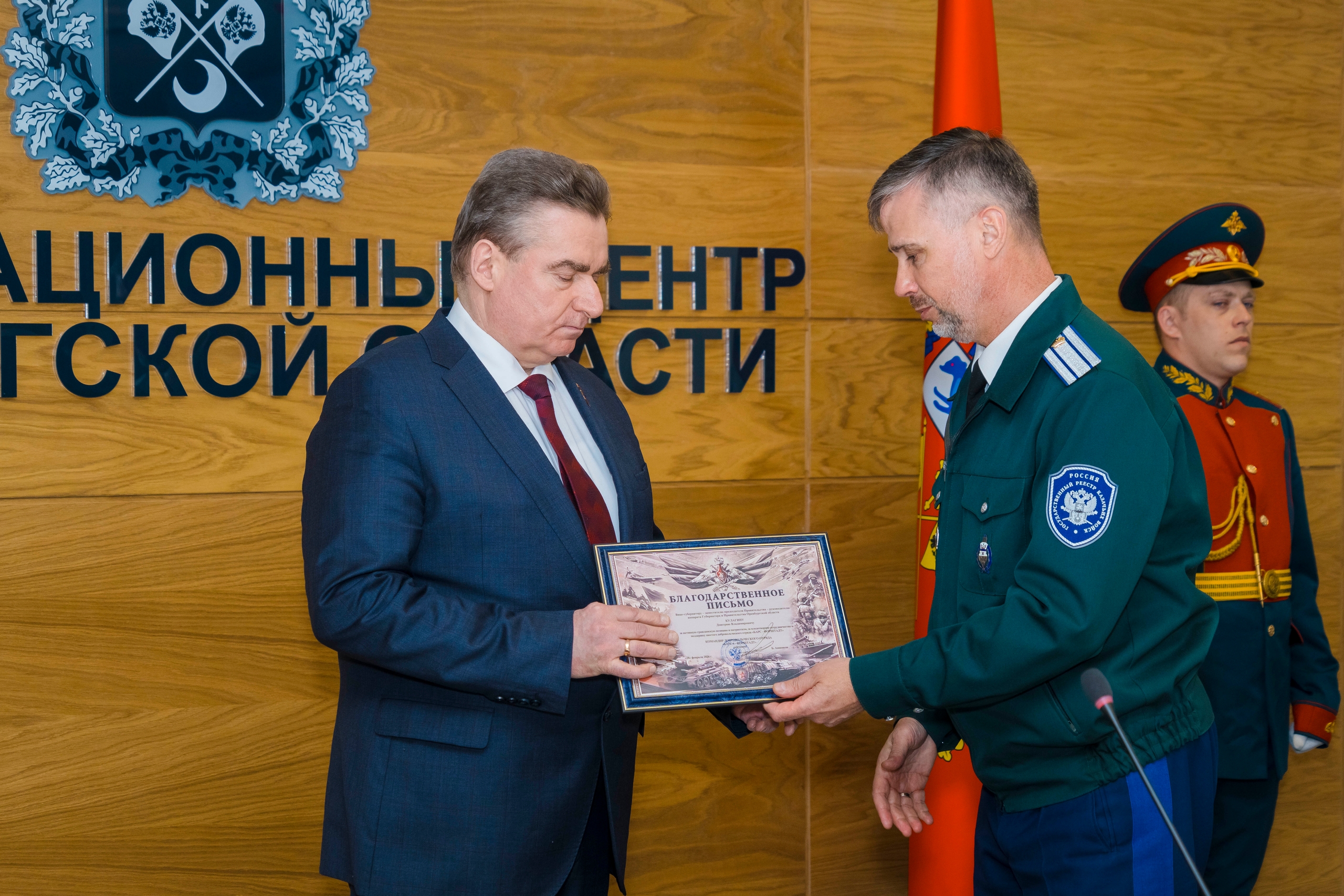 Атаман Сергей Слепов передал Дмитрию Кулагину Благодарственное письмо от командира батальона БАРС-6 – за помощь и поддержку.
