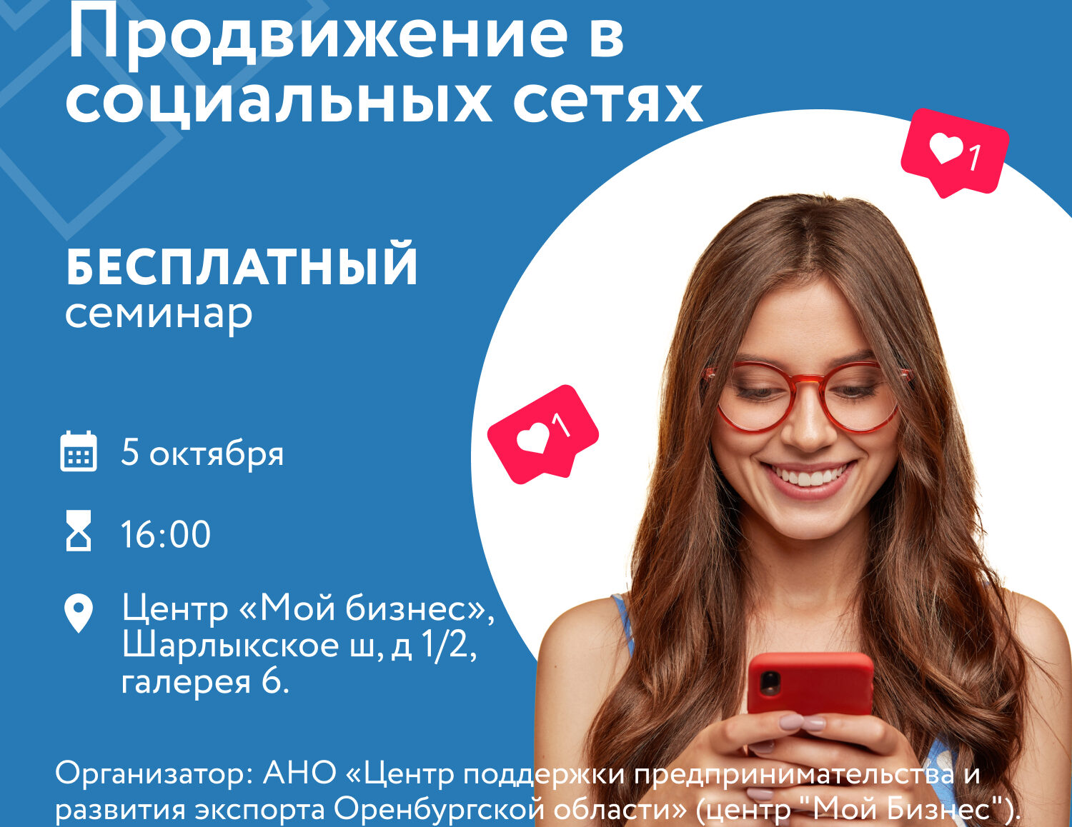 Если ты самозанятый или только планируешь начать свою деятельность, тебя ждут на бесплатный семинар «Продвижение в социальных сетях» в Центре «Мой Бизнес» (18+)