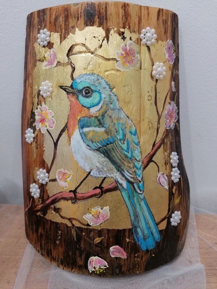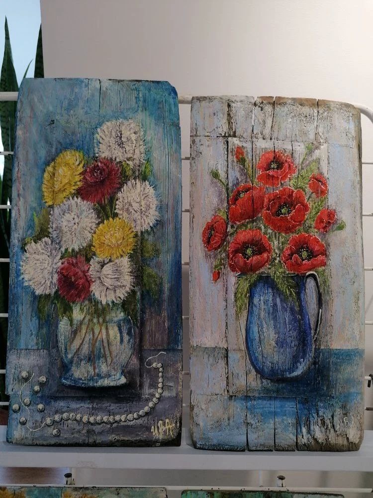 Авторские экспозиции покоряют своим необычным взглядом на старинный быт. Произведения созданы на древних плашках от оконных ставен, на фрагментах деревьев различных пород. Для художницы древесина стала холстом — материалом, который хранит и оживляет образы ушедших эпох.