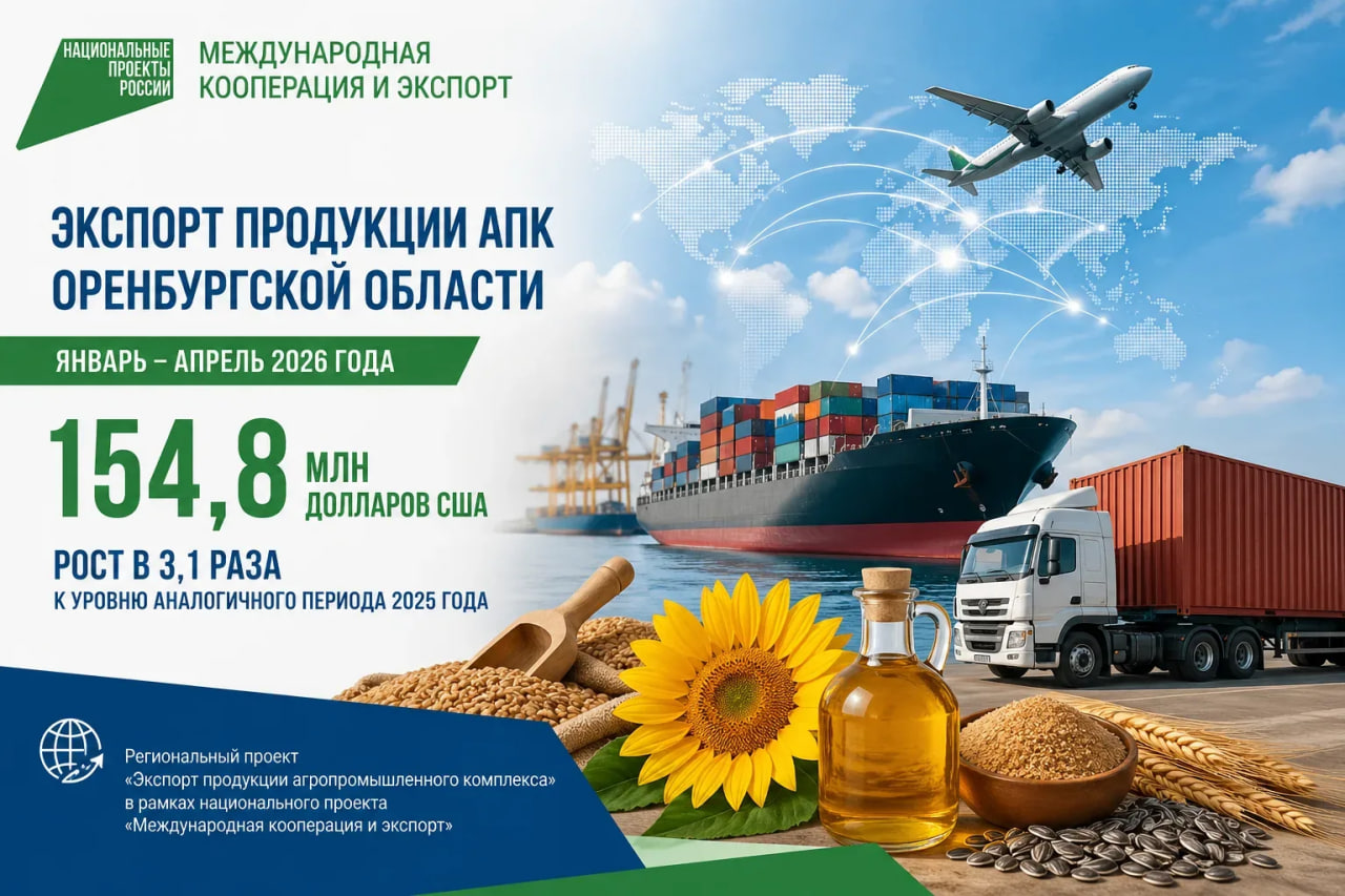 Оренбуржье увеличило экспорт продукции АПК в три раза с начала 2026 года