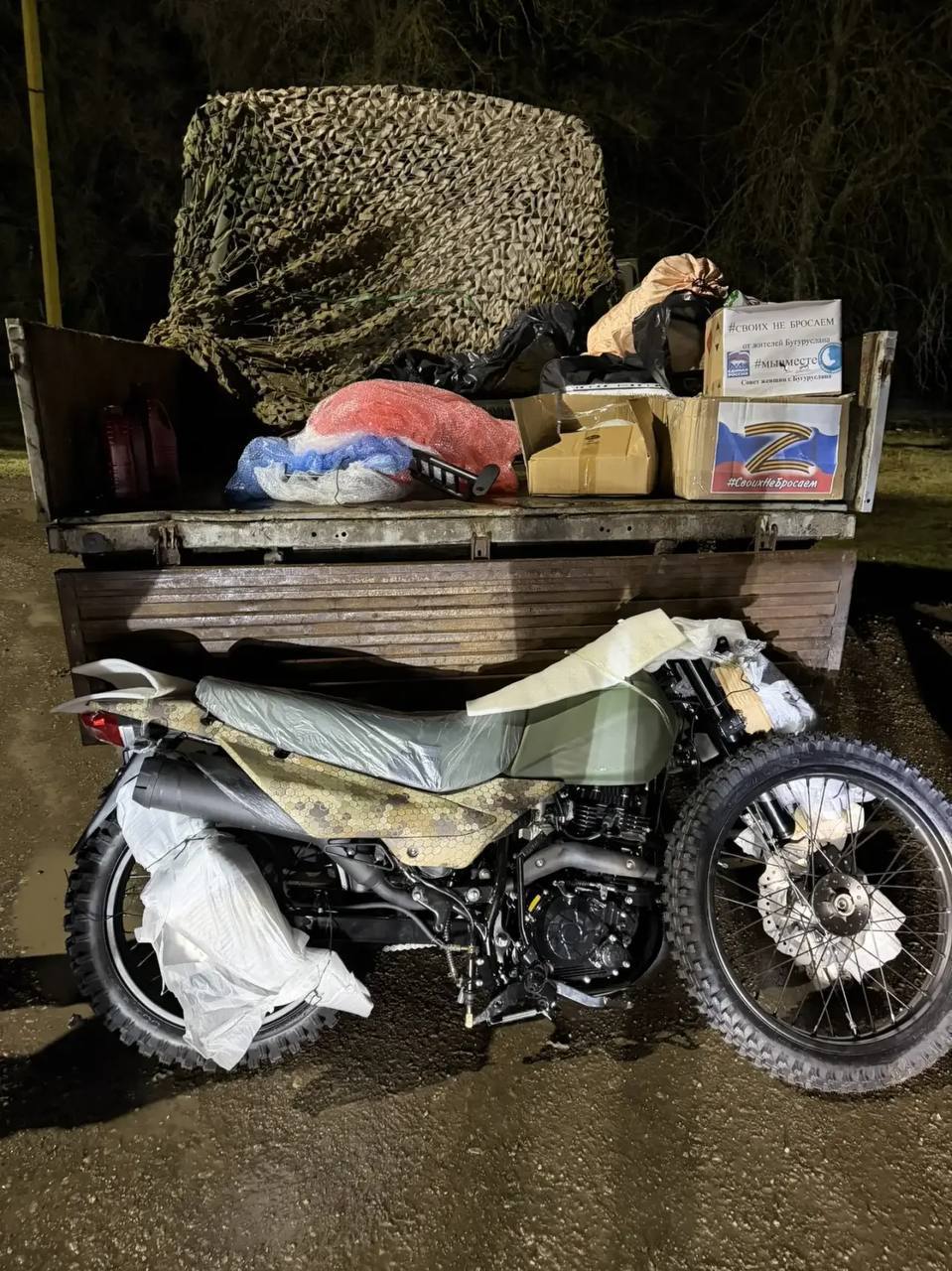 И завершена поездка на передовую еще южнее – за городом Мелитополь. Там общались с бойцам-десантниками. В подарок – мотоцикл, маскировочные сети, продукты и открытки от школьников.