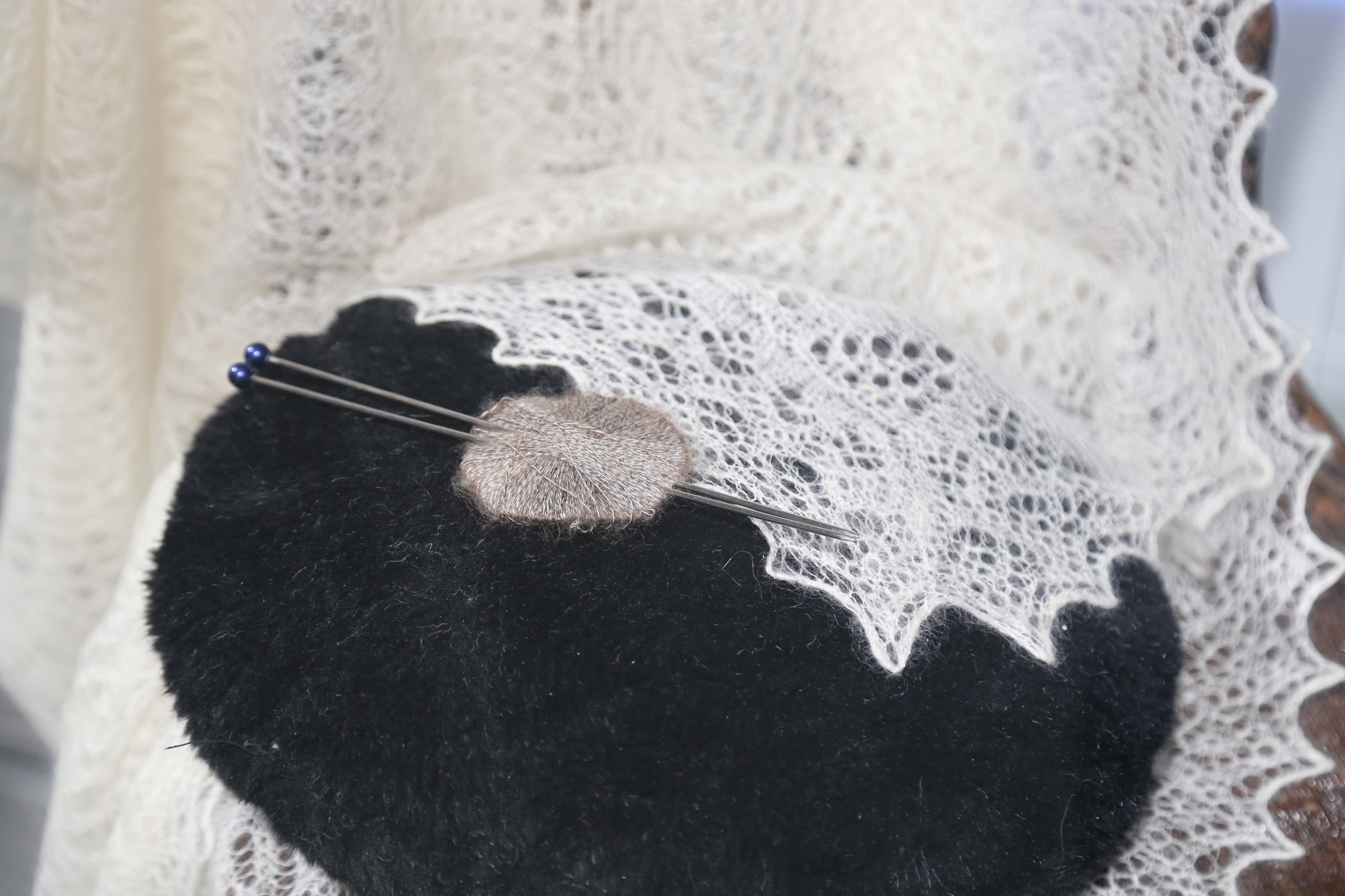 6 паутинок работы Ольги Федоровой — эта мастерица единственная пуховязальщица — член Союза художников СССР. А свадебное платье из паутинки работы дизайнера Анны Советовой, создали специально для выставки. Еще один уникальный экспонат мастера Сергея Прыткова — это платок жаккардового вязания.