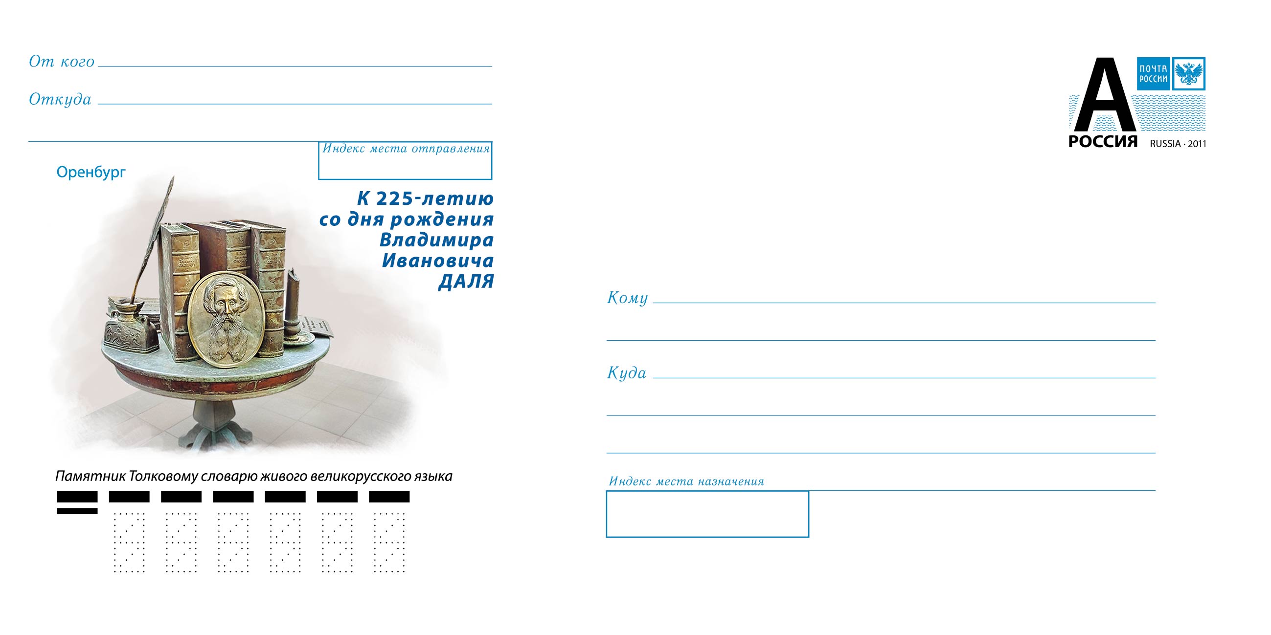 Ему 22 ноября 2026 года – 225 лет со дня рождения. И уже выпущен маркированный конверт Почты России. Тираж 50 тысяч. Гашение состоится в день рождения Даля – 22 ноября.