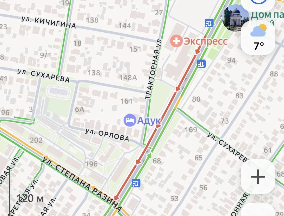 -Проспект Гагарина и ул. Чкалова: Плотное движение на пересечении с ул. Мира и в районе перекрестка с ул. Уральской.