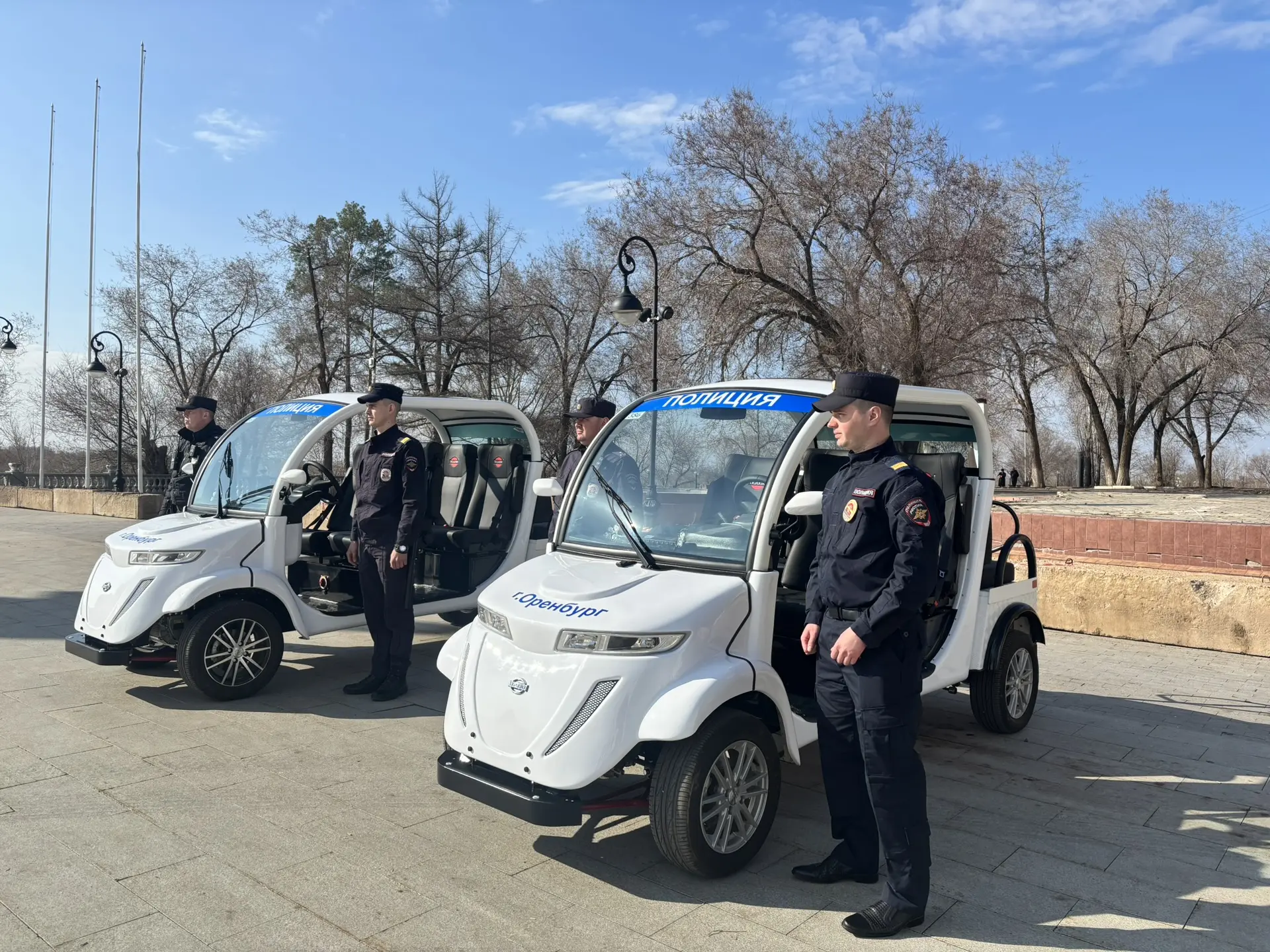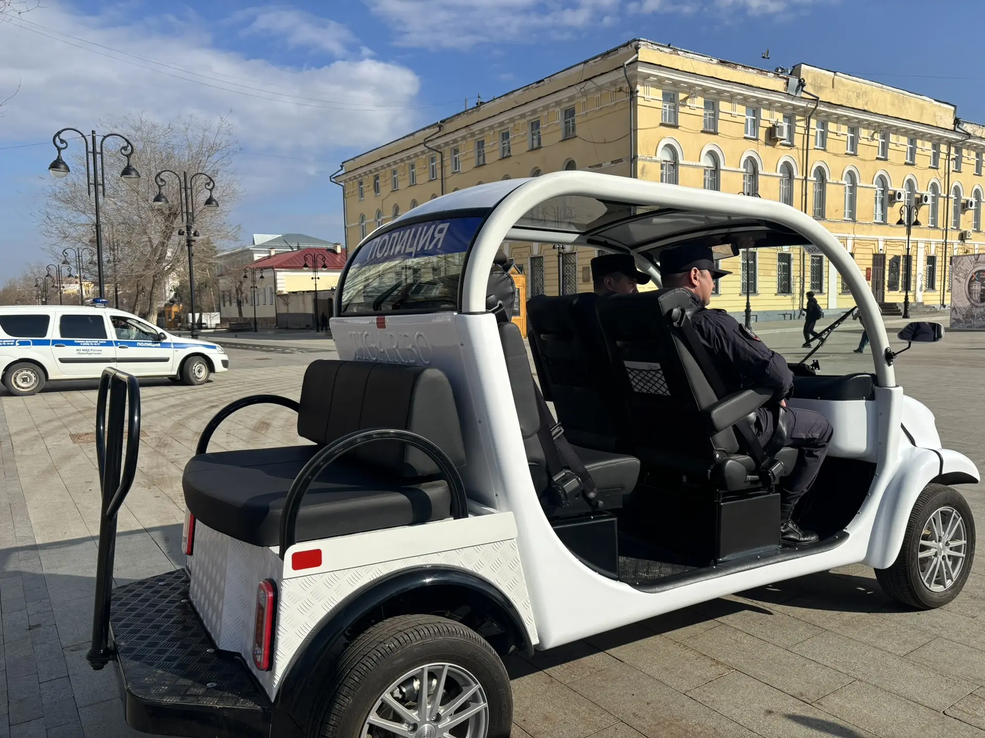 В Оренбурге на набережной Урала и пешеходной улице Советской появились электрокары, которыми управляют полицейские.
