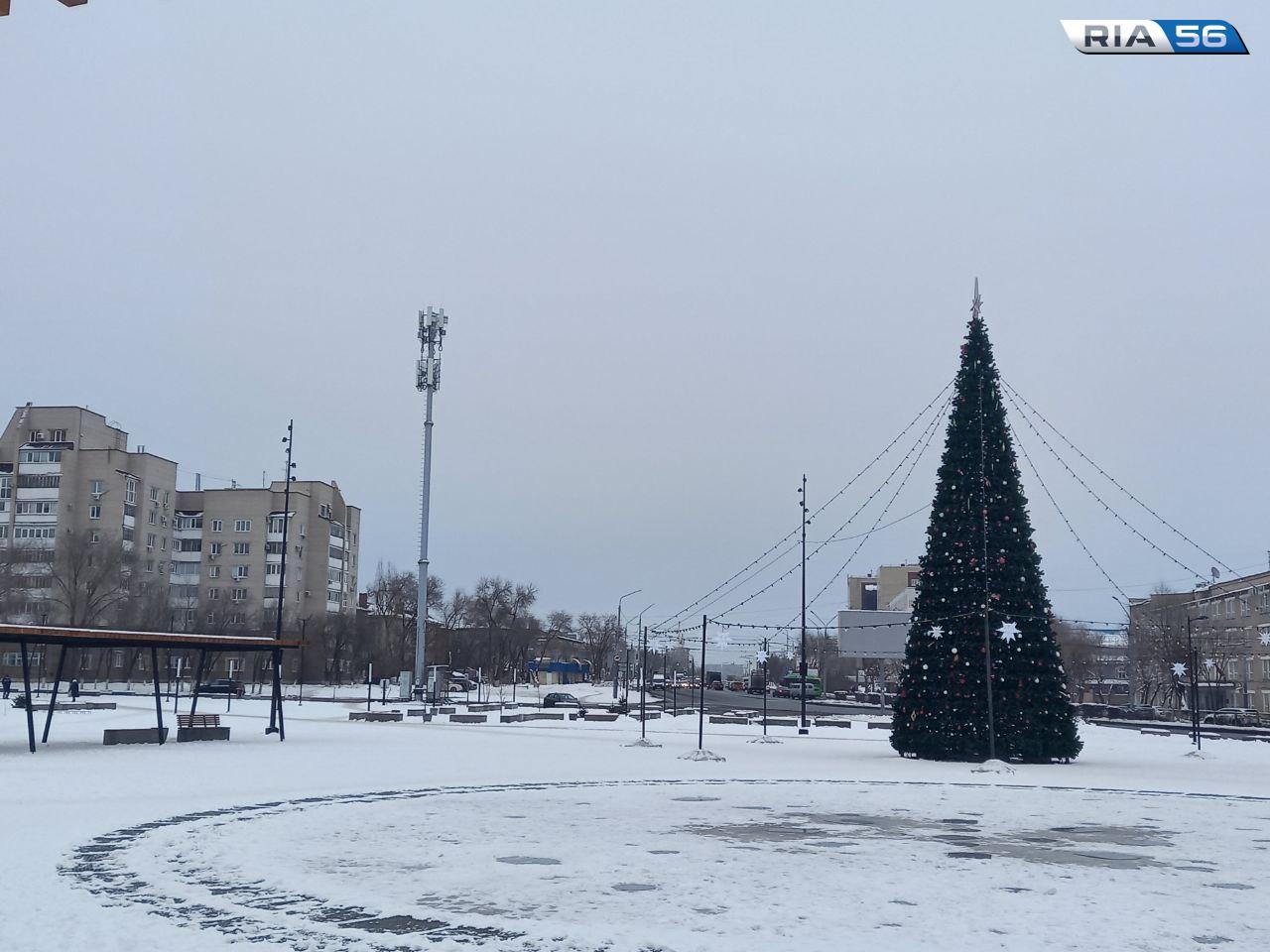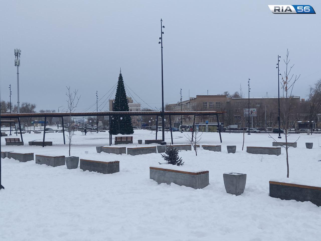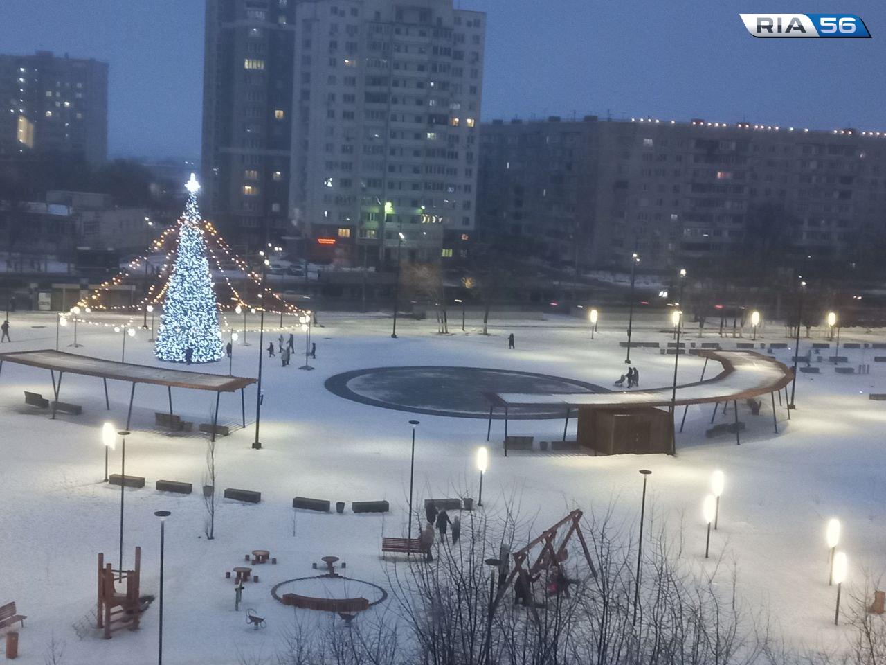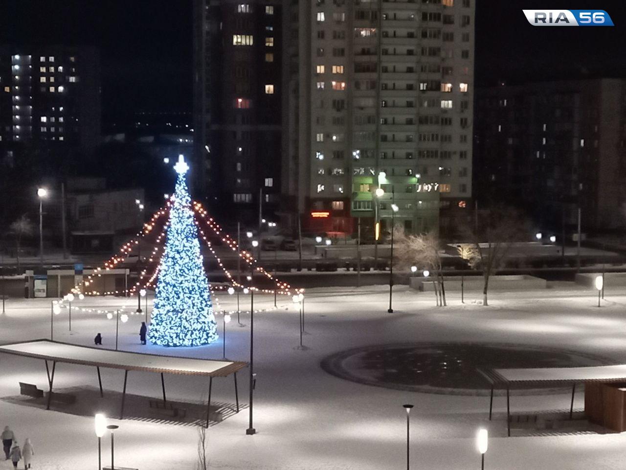 Рождественская сказка — ёлка и вокруг десятки огней. Вечером вид на новый сквер на углу улиц Чкалова и Ленинградской впечатляет.