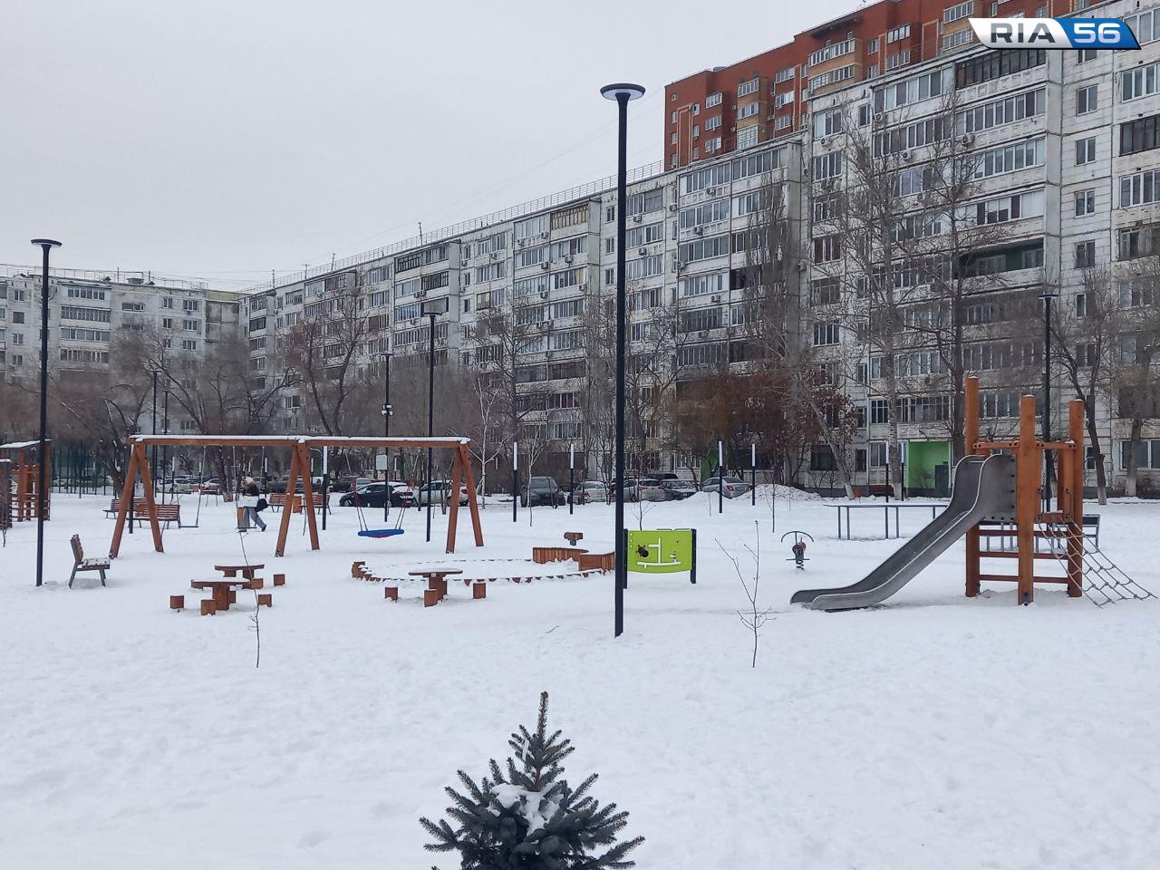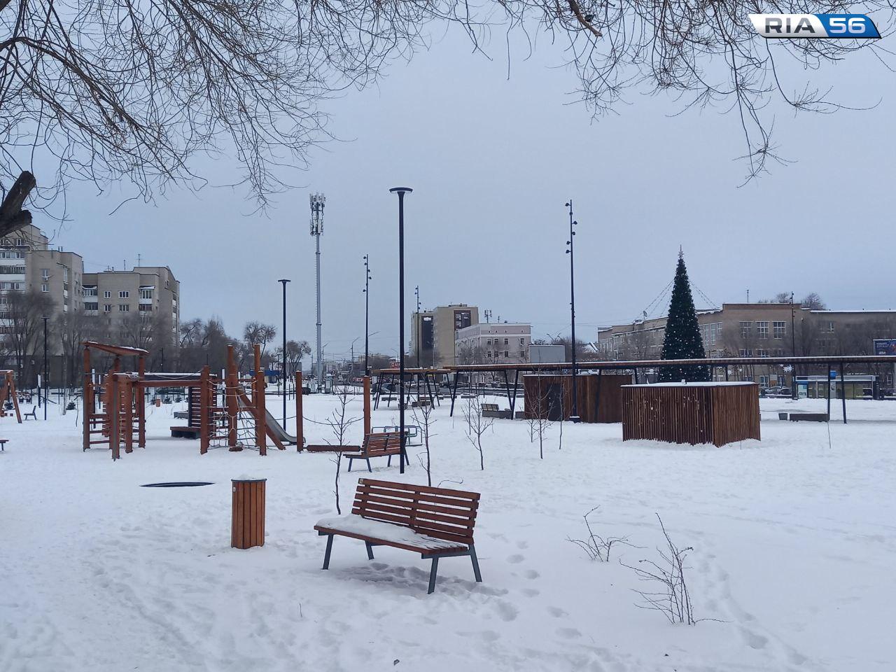 Утром в парке только владельцы собак на оборудованной площадке и редкие прохожие. Пустынные аллеи, игровые площадки и запорошенные снегом скамейки и теннисные столы. Но днем уже качели и горки занимает ребятня.