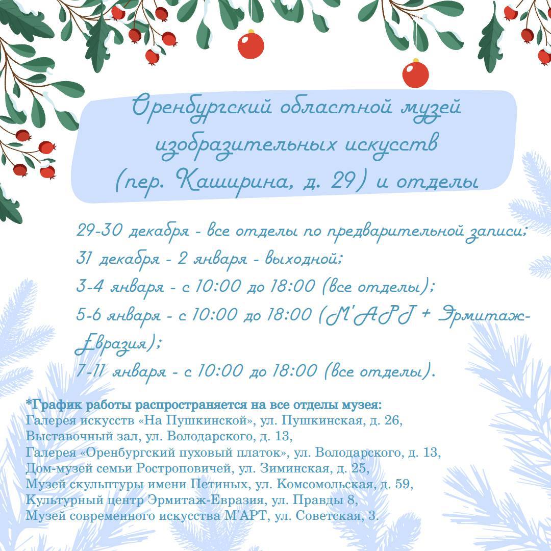 Проводим время культурно. График работы музеев Оренбуржья в новогодние праздники
