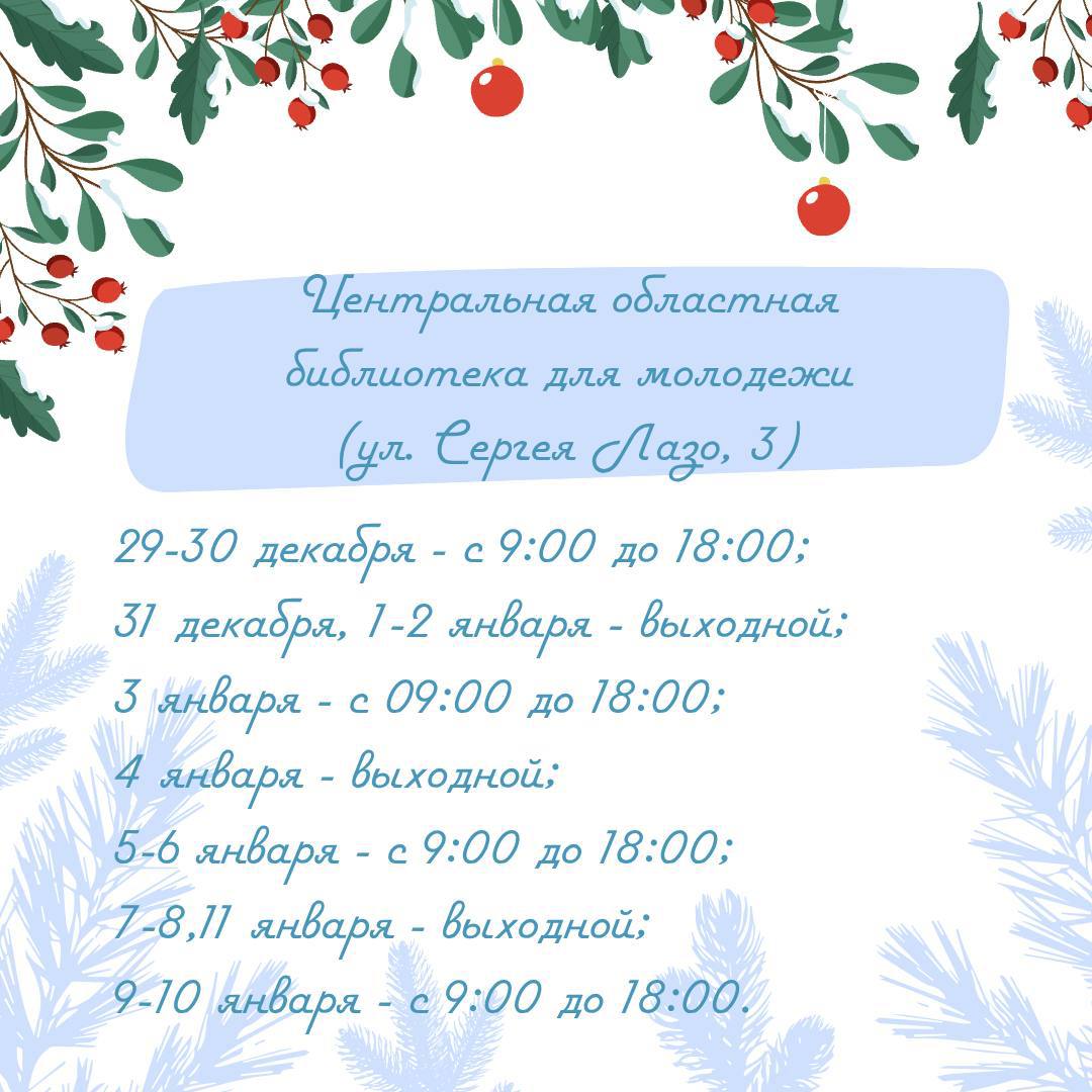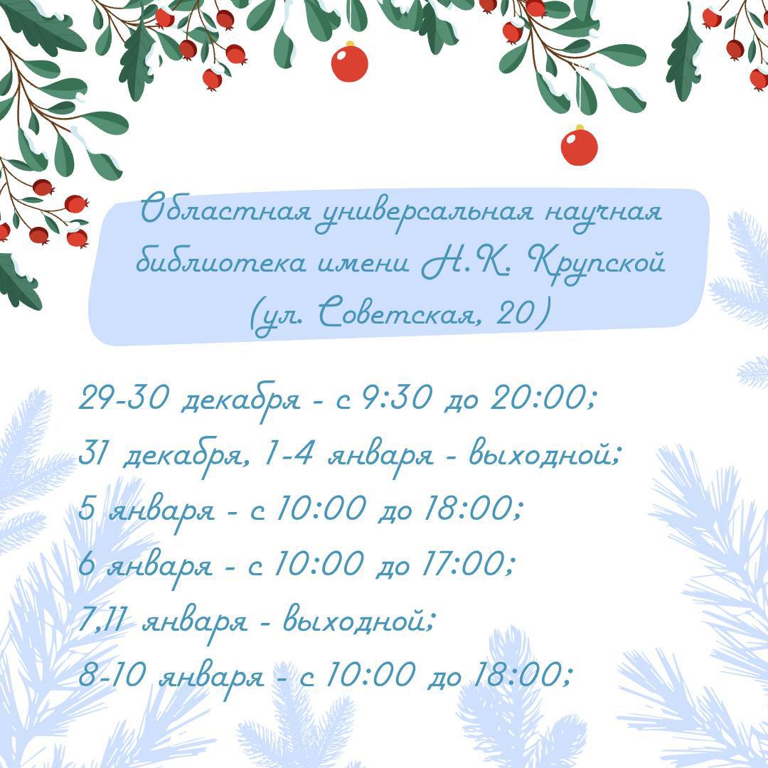 Областные музеи и библиотеки будут работать в новогодние праздники.