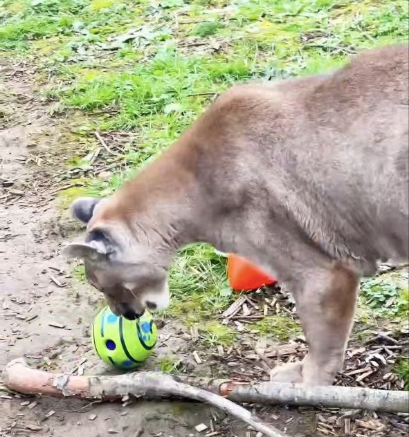 Пума Бостон из Сорочинского зоопарка играет в футбол в парке «Земля Прайда»