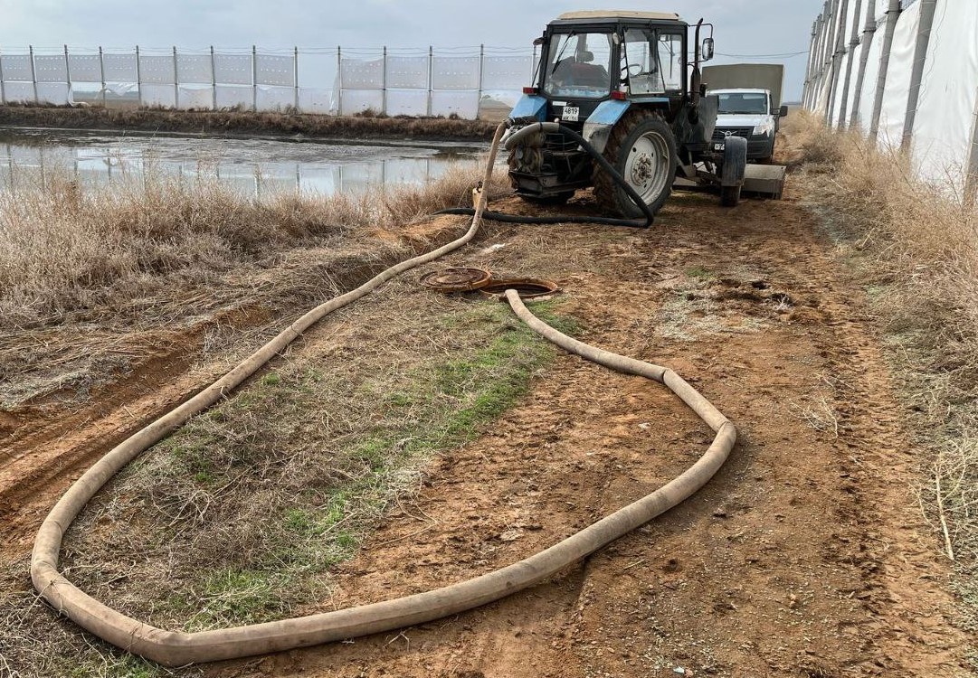 Откачивают воду при помощи мотопомп и прицепной откачивающей установки. Собранная с поверхности вода перекачивается в колодец и по трубопроводу направляется на канализационную насосную станцию, а уже с неё уходит на городские очистные сооружения канализации для дальнейшей очистки.