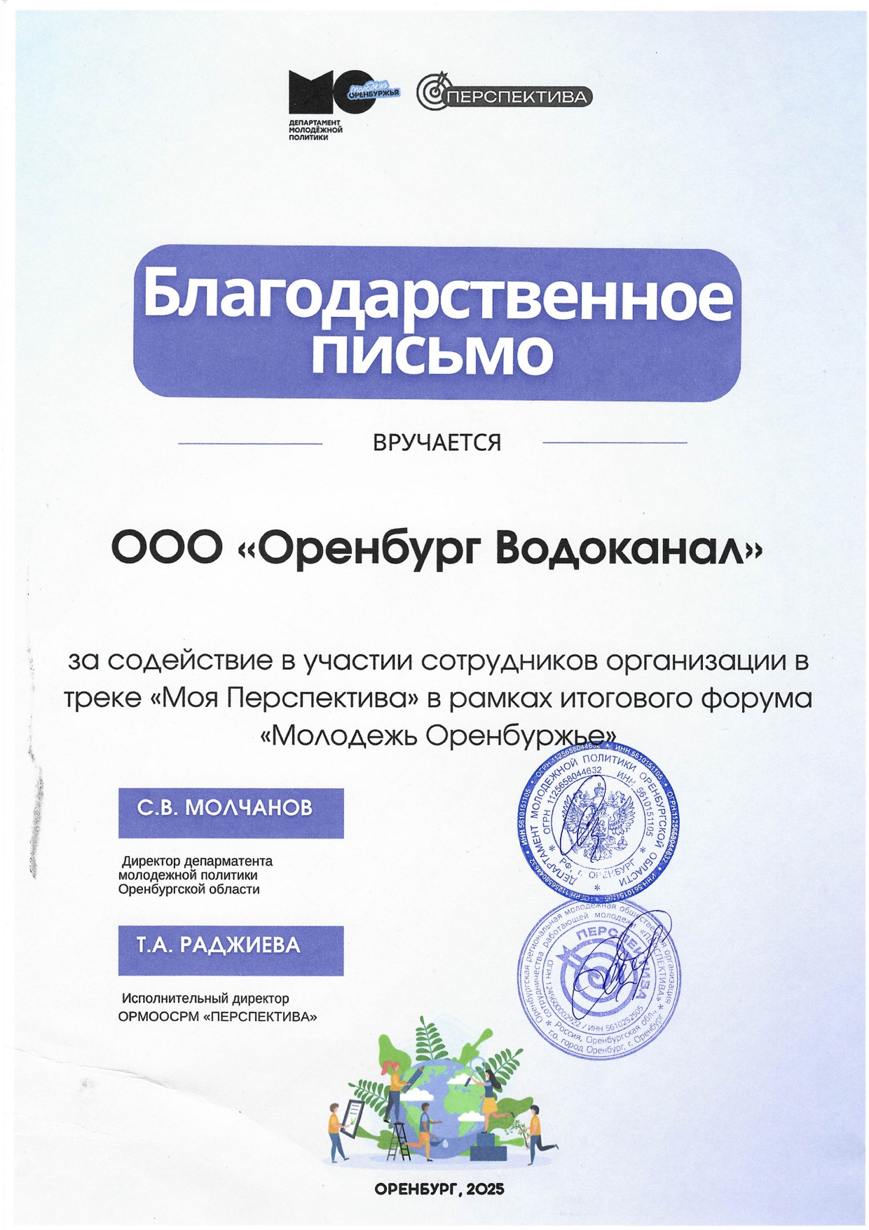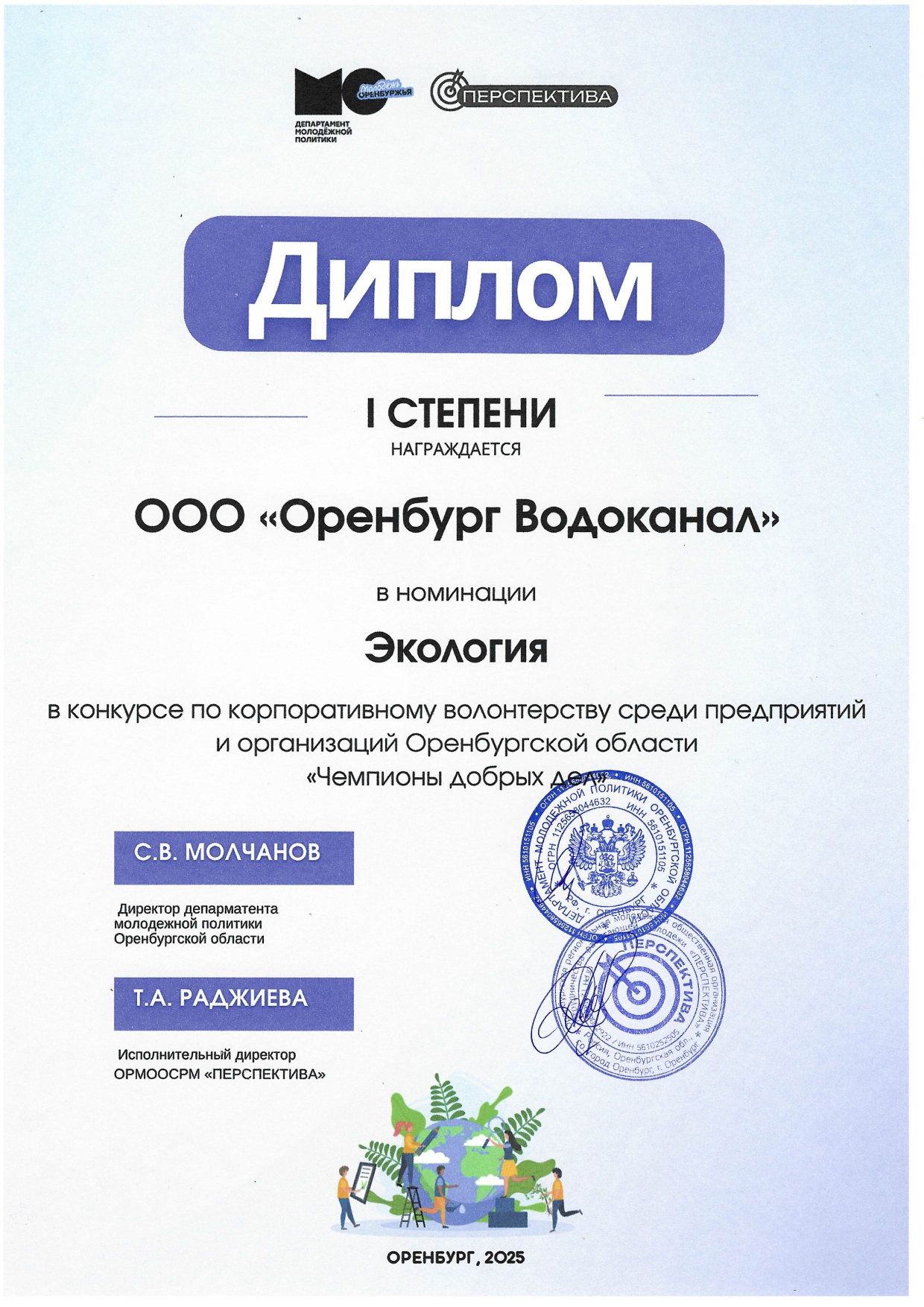 Росводоканал Оренбург занял первое место в региональном конкурсе проектов в сфере корпоративного волонтерства «Чемпионы добрых дел» в номинации «Экология». Подвели итоги и наградили победителей на региональном форуме «Молодёжь Оренбуржья».