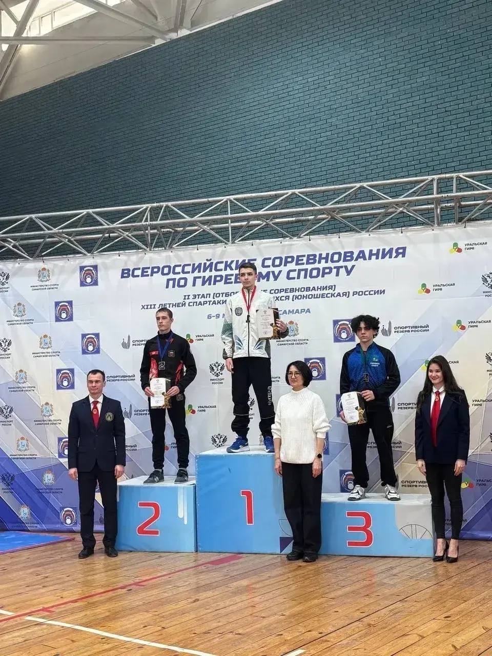 Наши спортсмены уступили лишь одну ступень пьедестала в общекомандном зачете, соревнуясь с 130 гиревиками из 28 регионов.